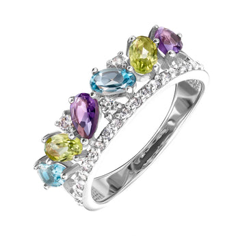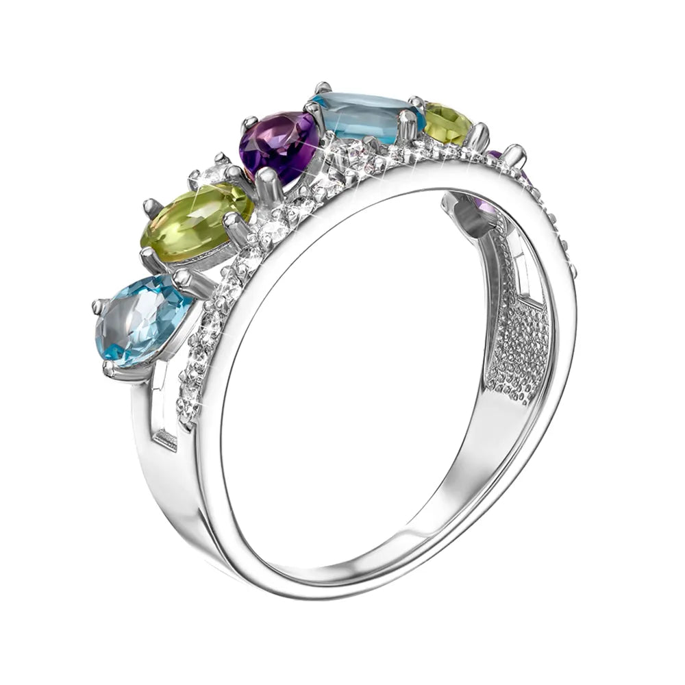 Каблучка з білого золота з міксом напівдорогоцінного камяння 530292/02/1/6641