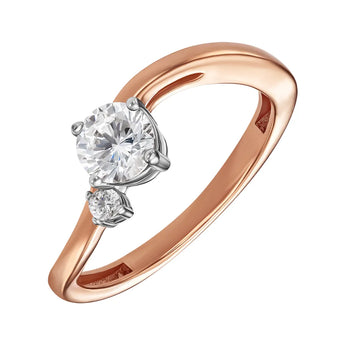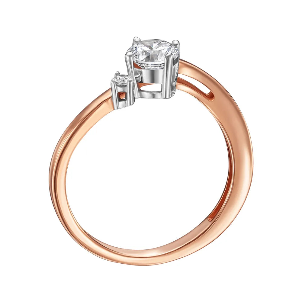 Каблучка з червоного золота з фіанітами та родіюванням 17111/01/1/189