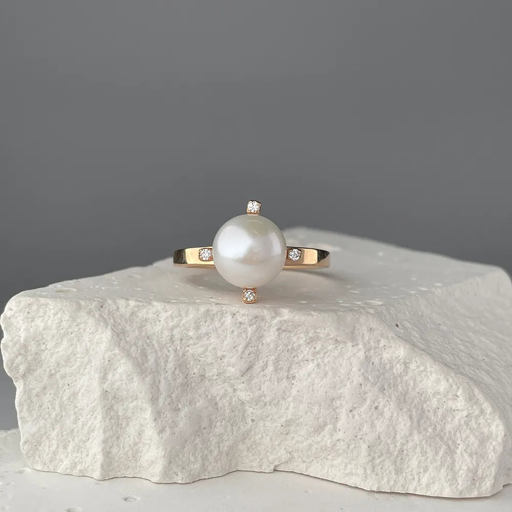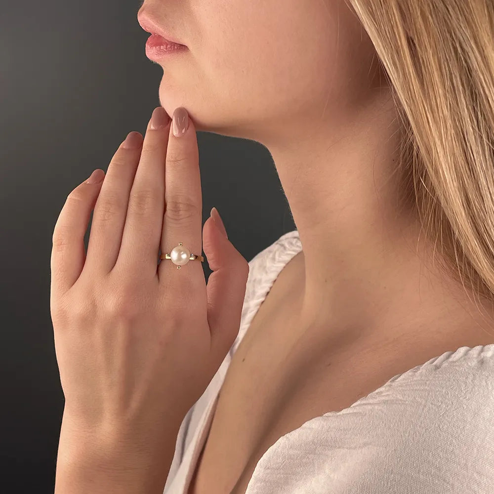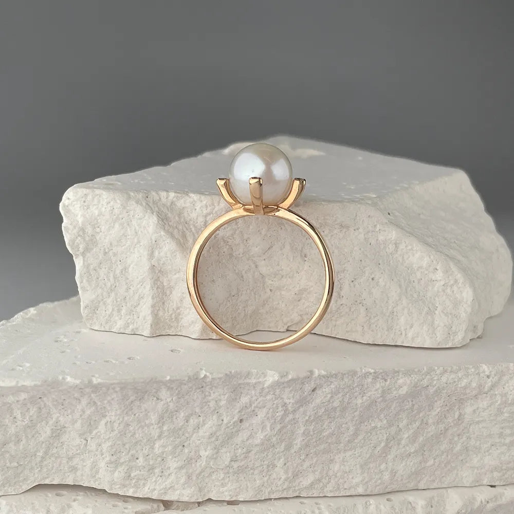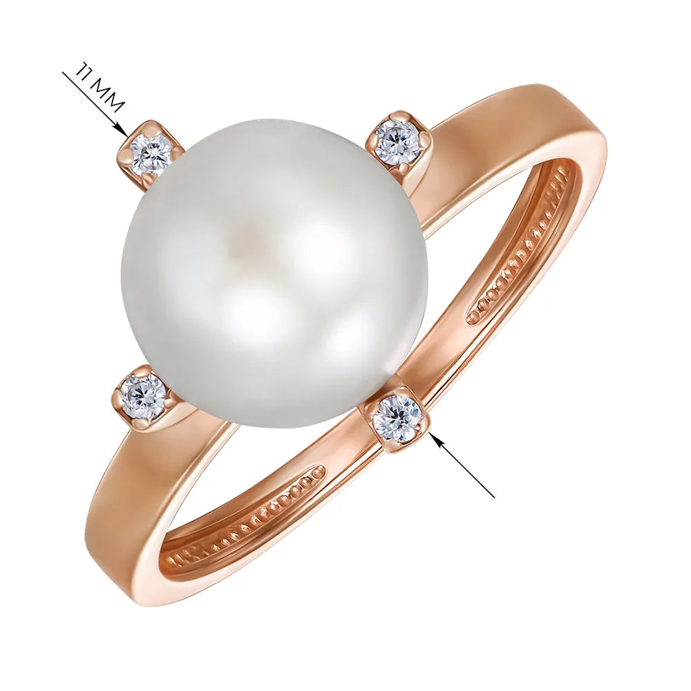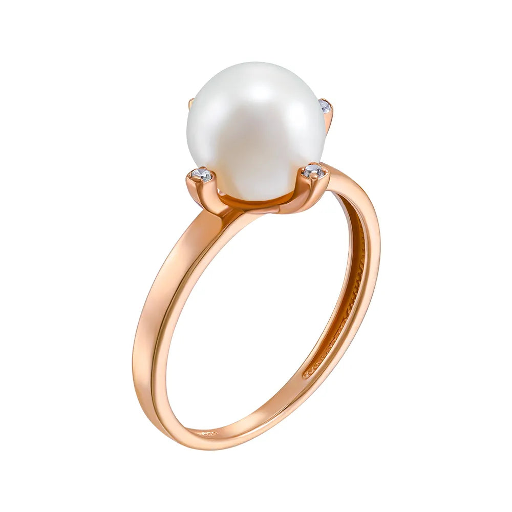 Каблучка з червоного золота з перлами та фіанітами 12624 с