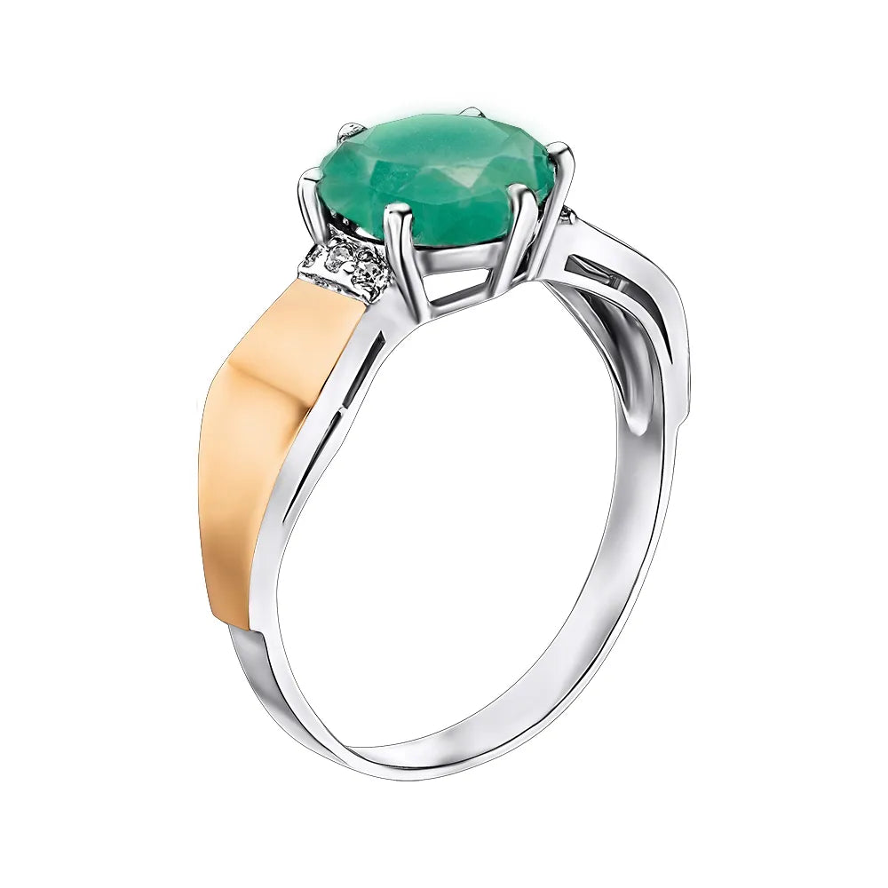 Каблучка зі срібла із золотими накладками з агатом та фіанітами 1439/1р-GRAG
