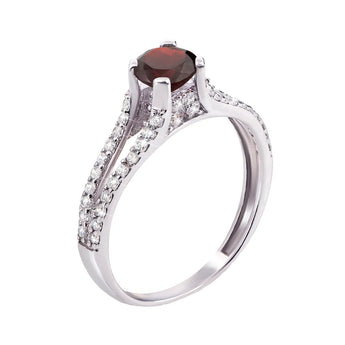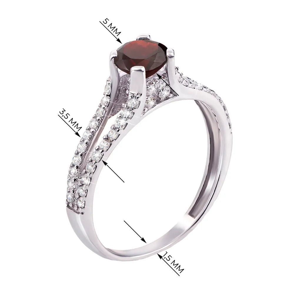Срібна каблучка з гранатом і фіанітами 1665/9р-GAR