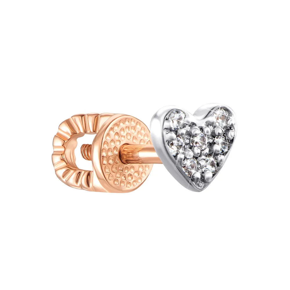 Сережка в одне вухо з комбінованого золота з фіанітами 21056-0/01/1/1