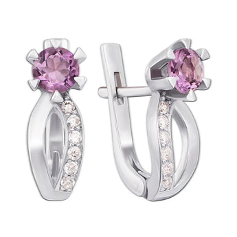 Сережки із срібла з аметистом з аметистами і цирконієм 2164/9р-AMT