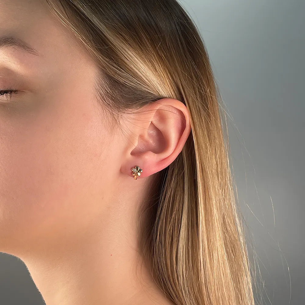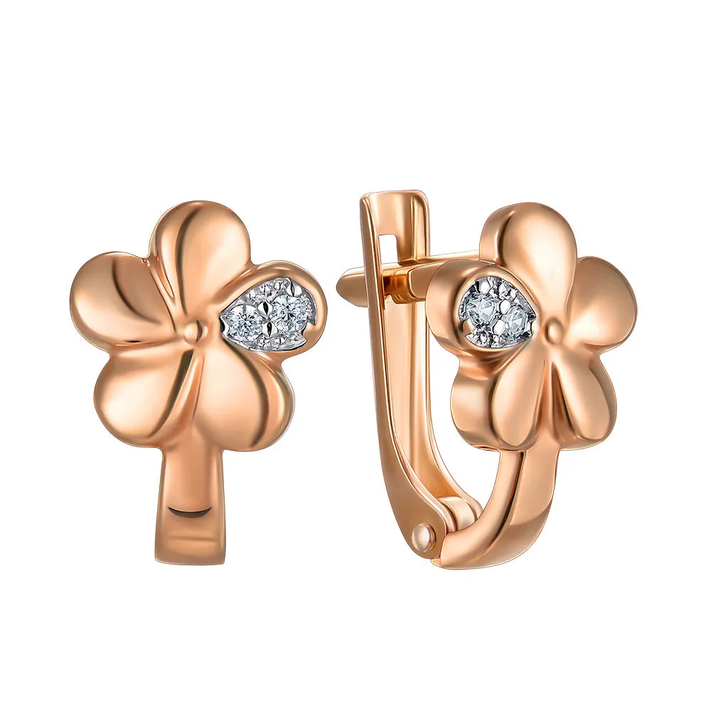 Сережки Квіточки з комбінованого золота з фіанітами 23546/01/1/1