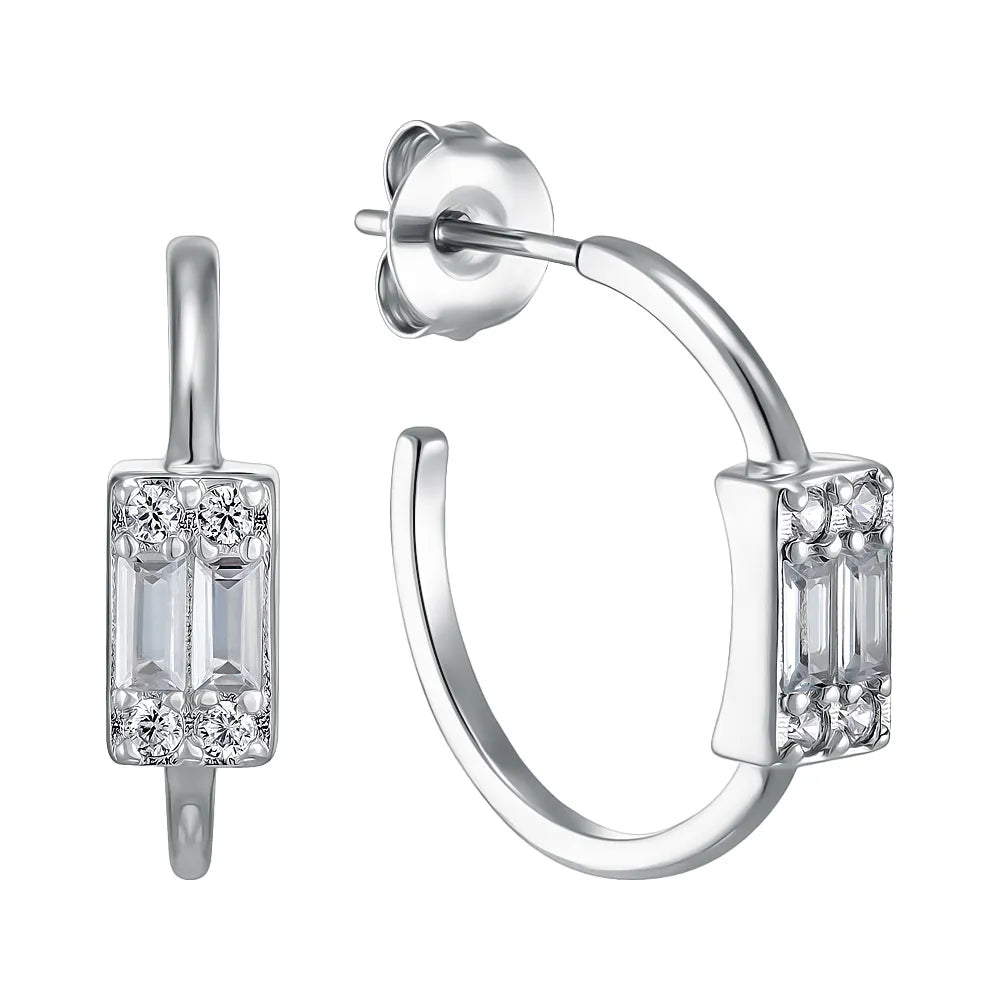 Сережки-напівкільця зі срібла з фіанітами PDE01799-E/12/1