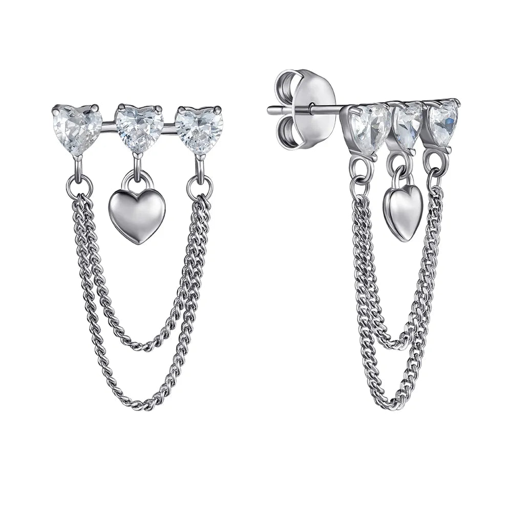 Сережки-підвіски із срібла з фіанітами AE03264-E/12/1