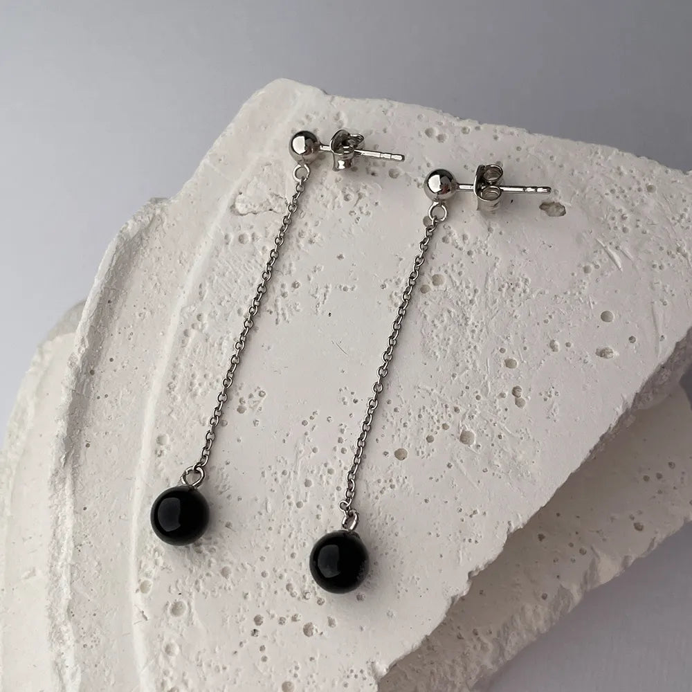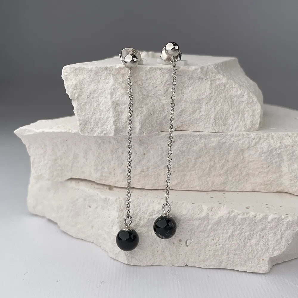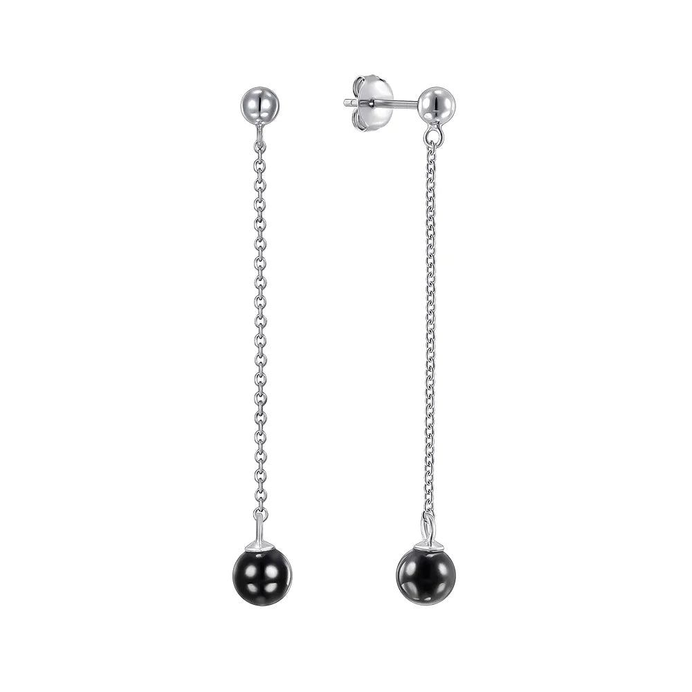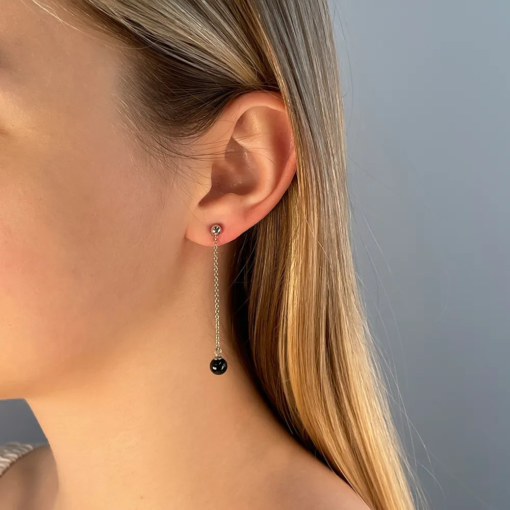 Сережки-підвіски з срібла з чорною намистиною GE02242A-E/12/4590