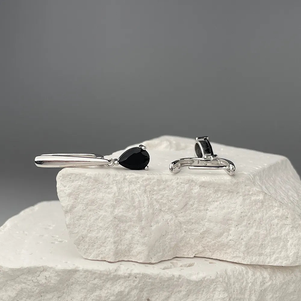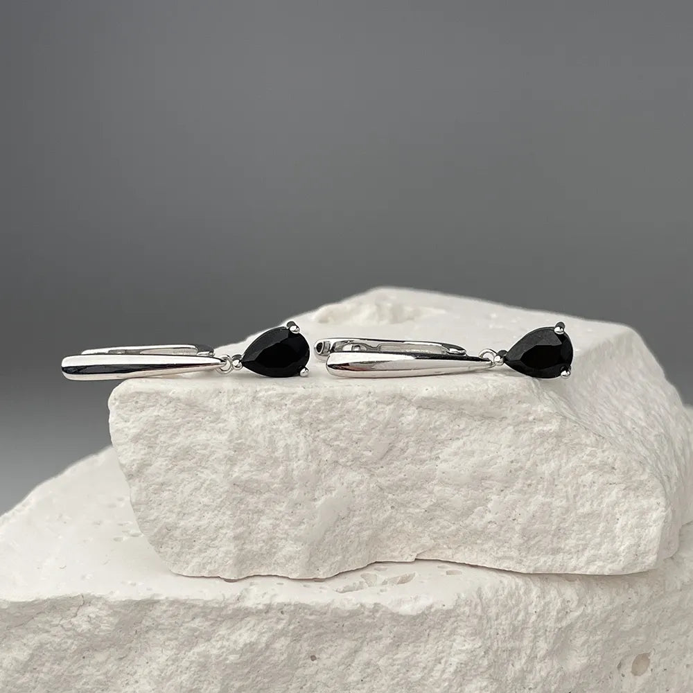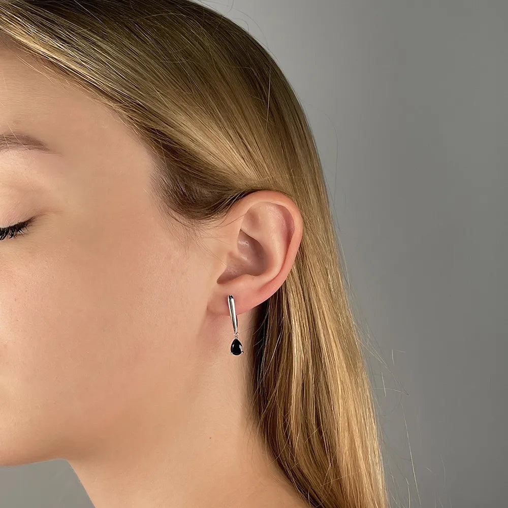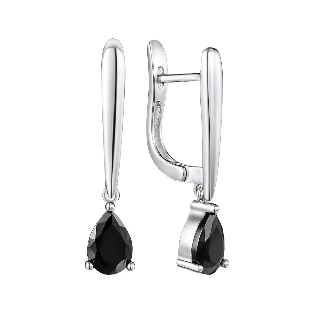 Сережки-підвіски зі срібла з чорним фіанітом B02011-E/12/526