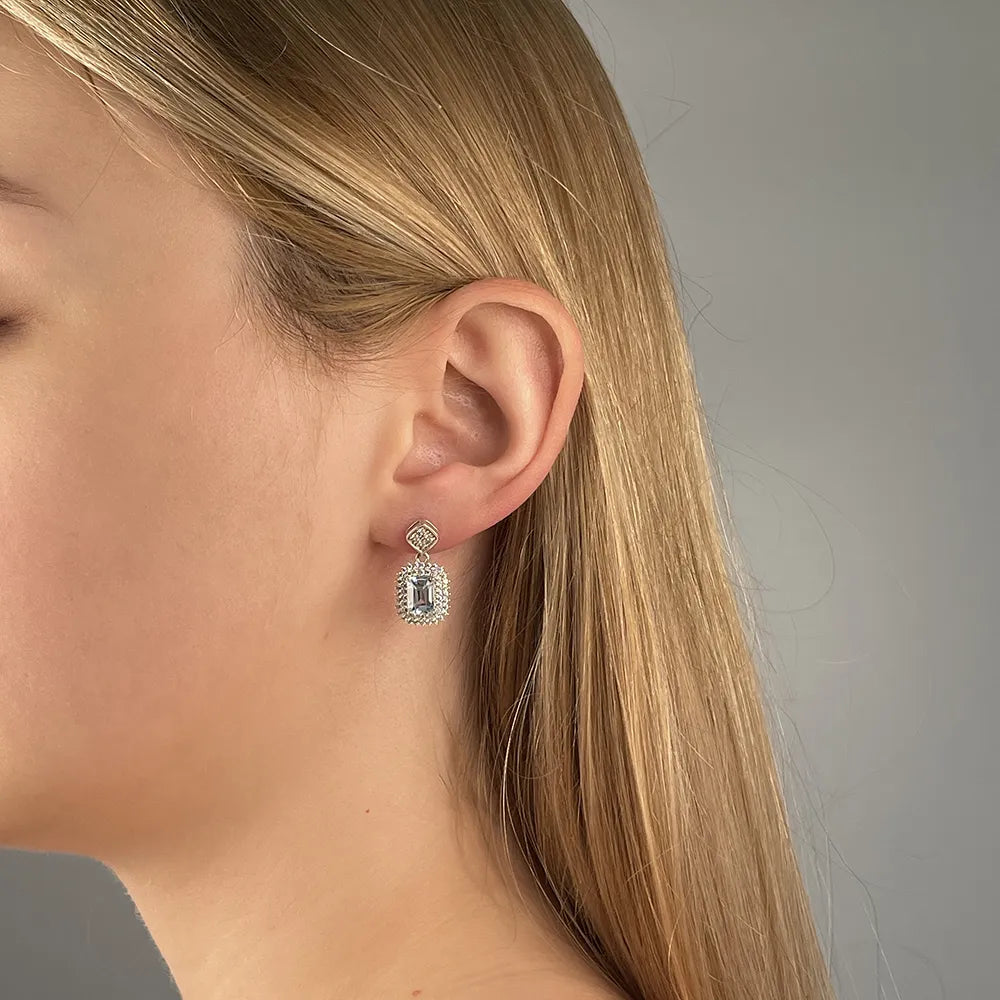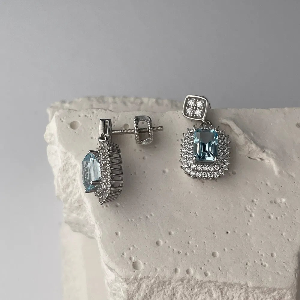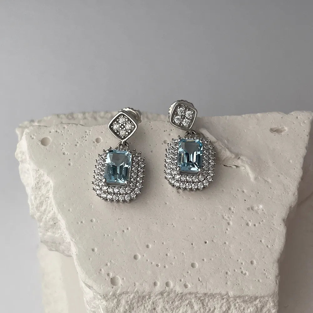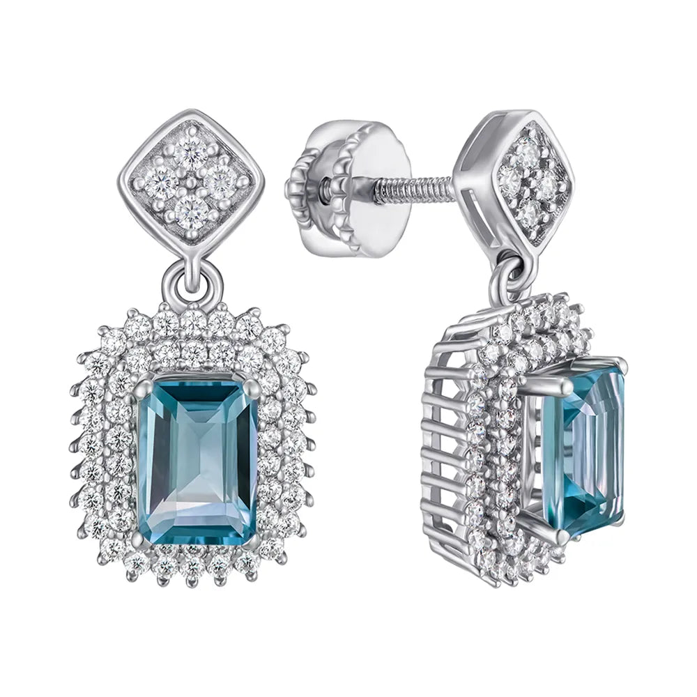 Сережки-підвіски зі срібла з топазом та фіанітами KRS_635-TOP-E/12/16054