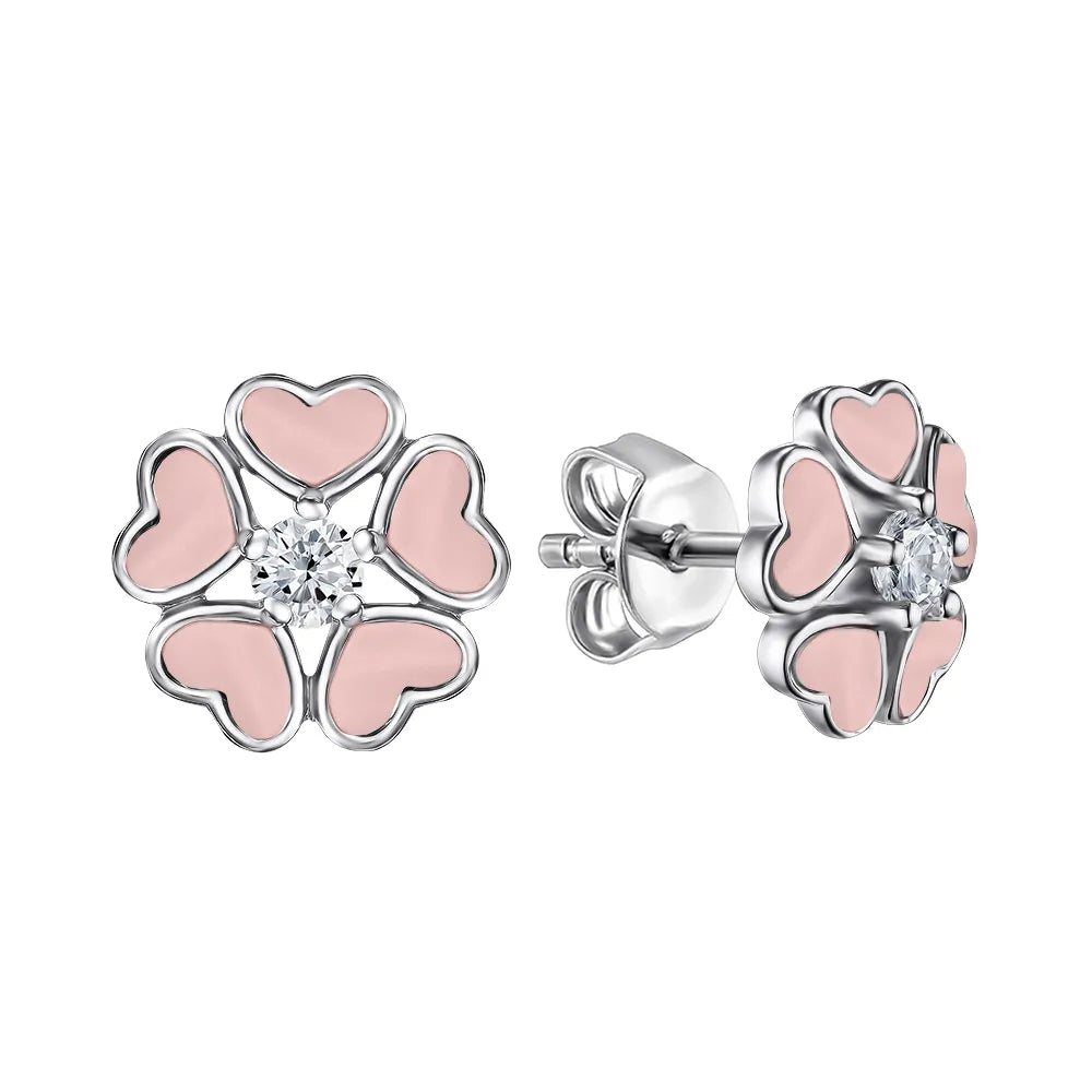 Сережки-пусети із срібла з перламутром та фіанітом ME15258A-E/12/1090