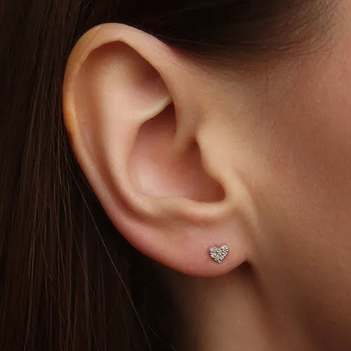 Сережки-пусети Сердечка з білого золота з фіанітами 21056/б к
