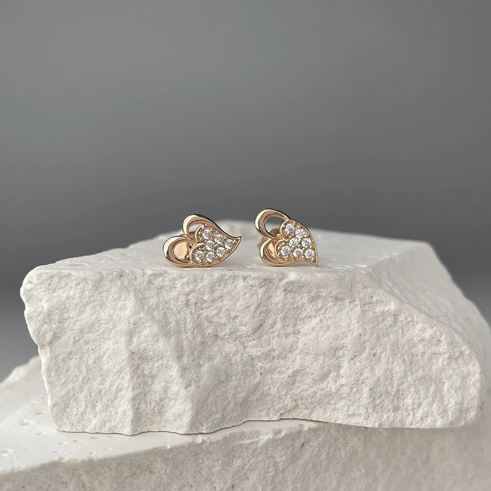 Сережки-пусети з червоного золота із фіанітами P-1881-E/01/1