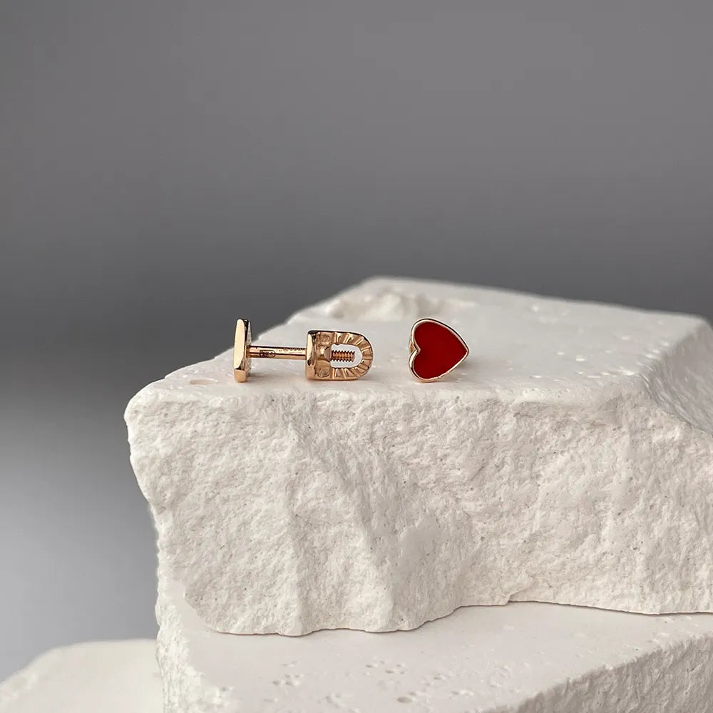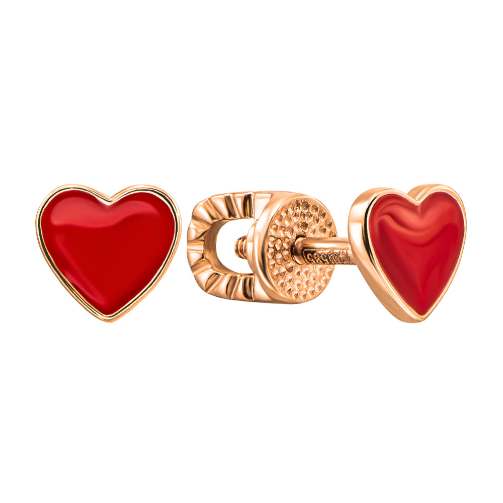 Сережки-пусети з червоного золота з емаллю 22110/01/0/392
