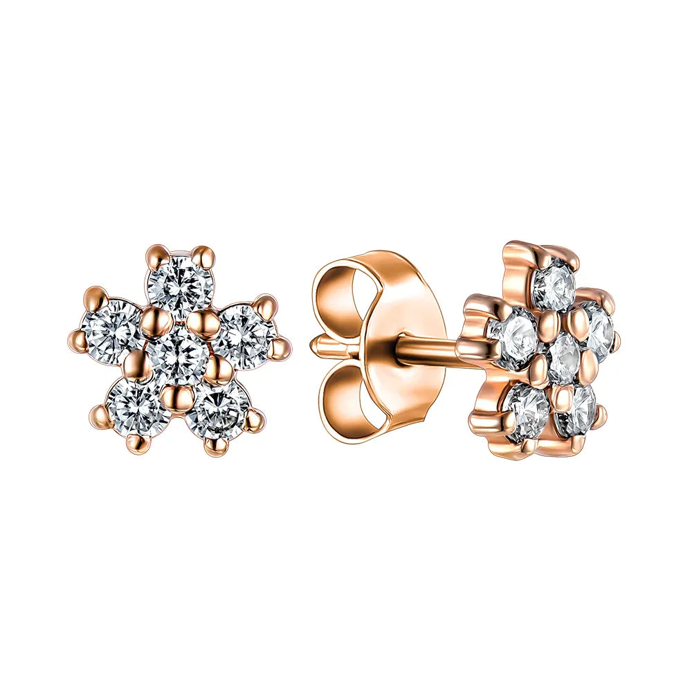Сережки-пусети з червоного золота з фіанітами 21010-з/01/0/17