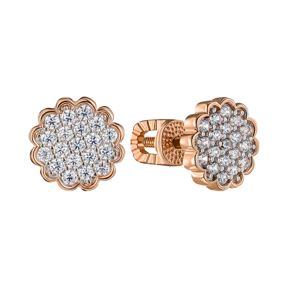 Сережки-пусети з червоного золота з фіанітами і родіюванням 23266/01/1/13