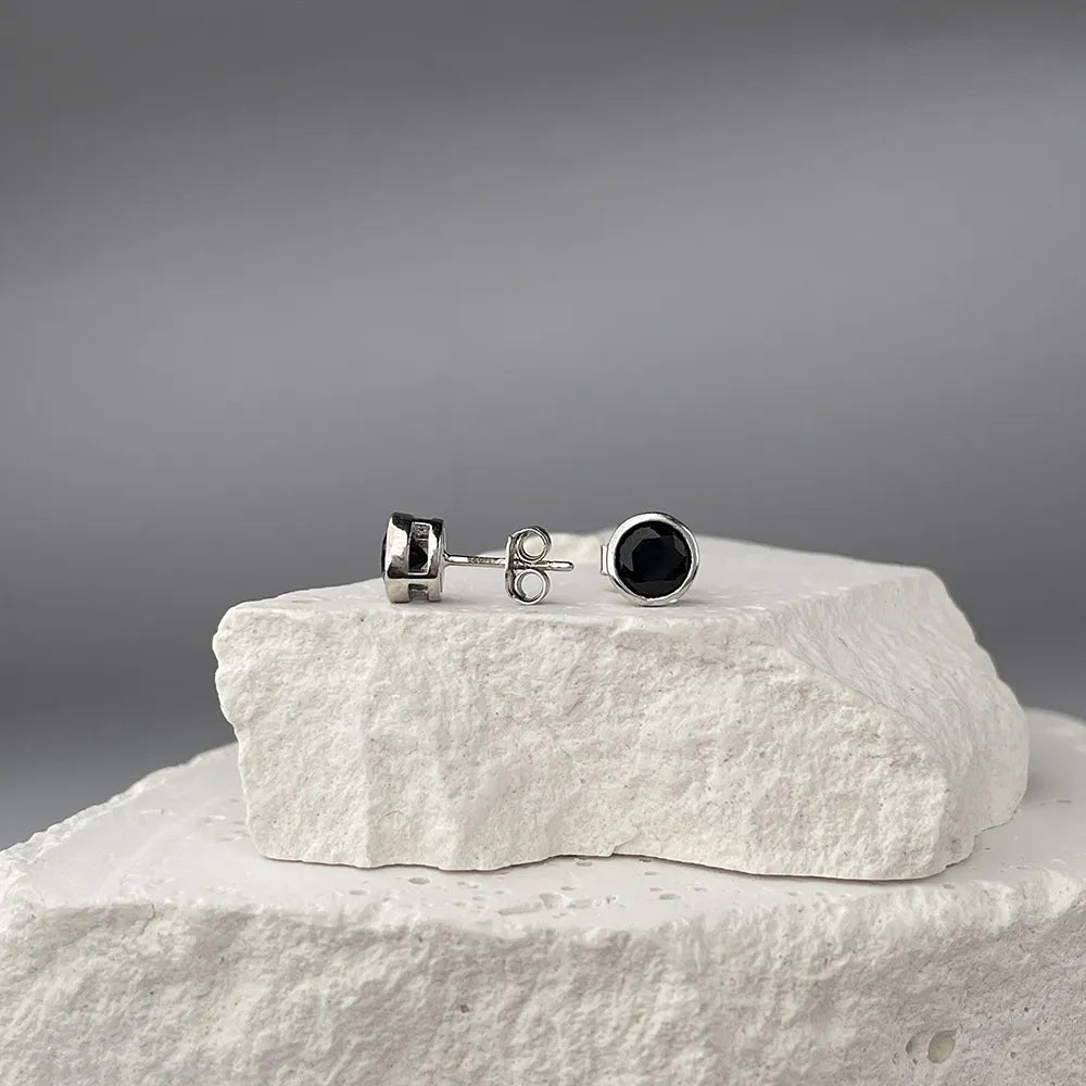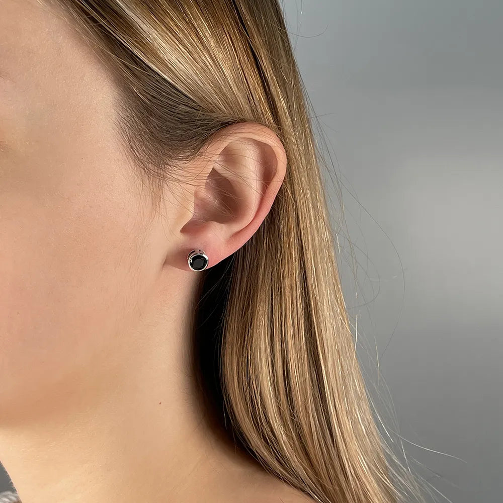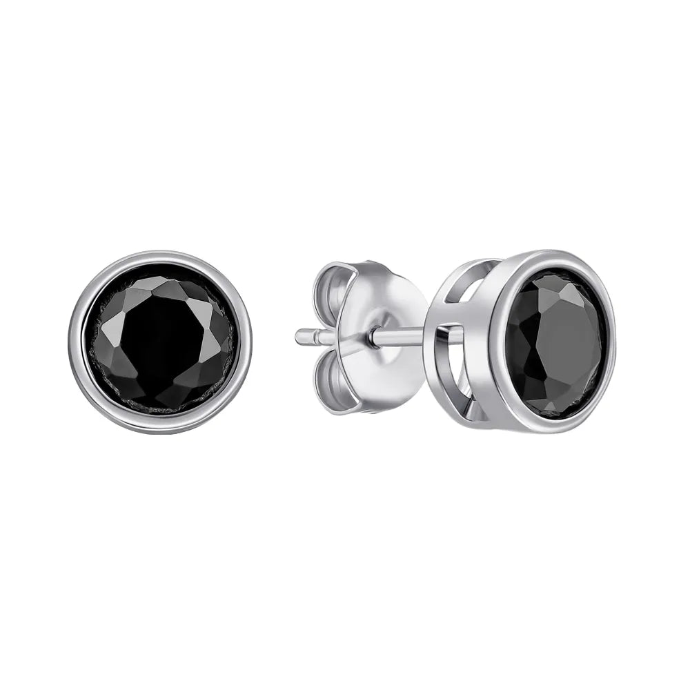 Сережки-пусети зі срібла з чорним завальцьованим фіанітом ISA0246-E/12/526
