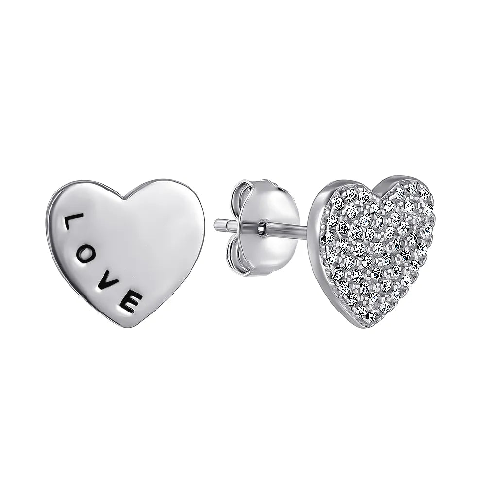 Сережки-пусети зі срібла з фіанітами і написом LOVE GE02318A-E/12/1