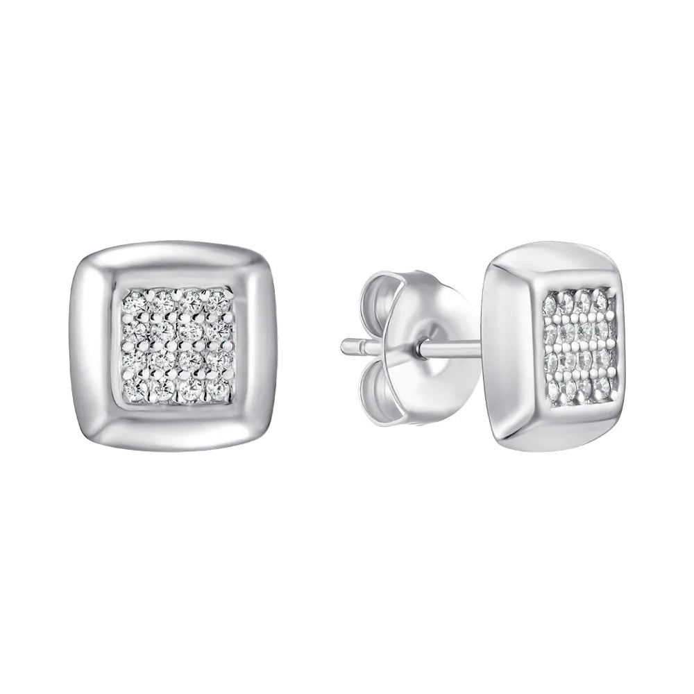 Сережки-пусети зі срібла з фіанітами PDE03020-E/12/1