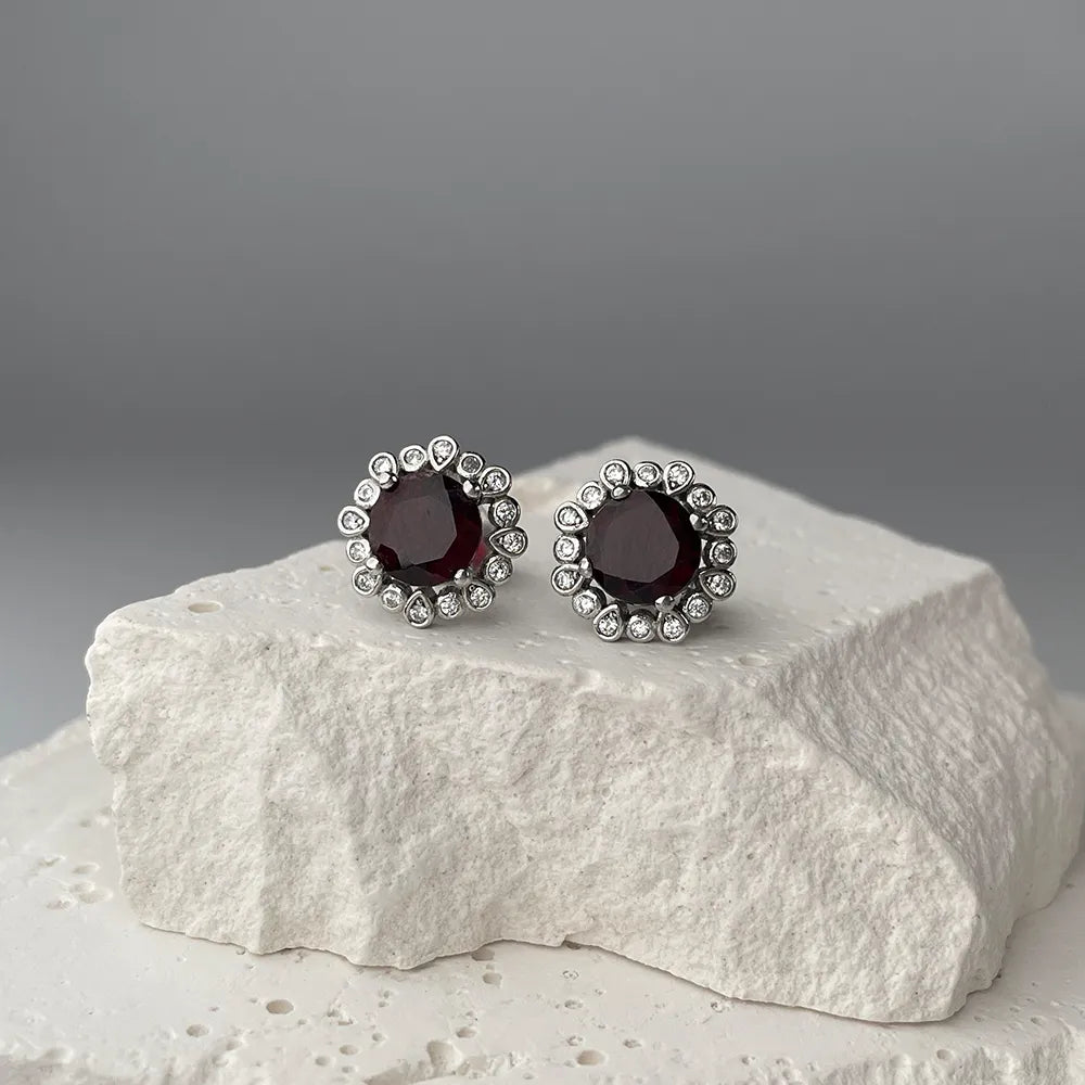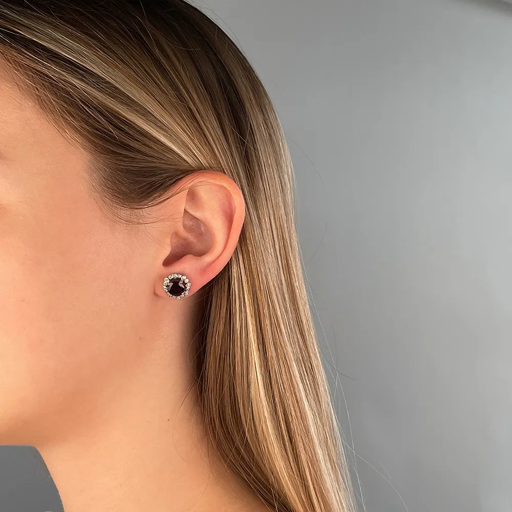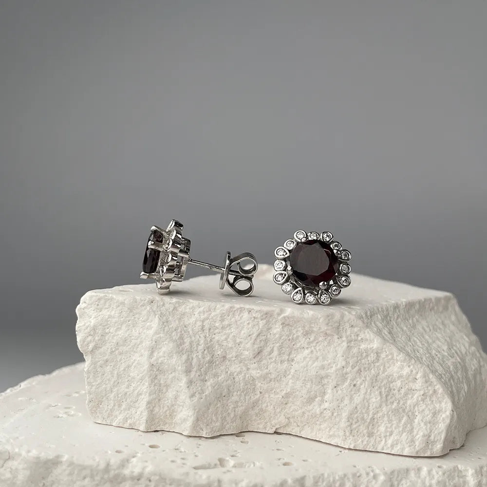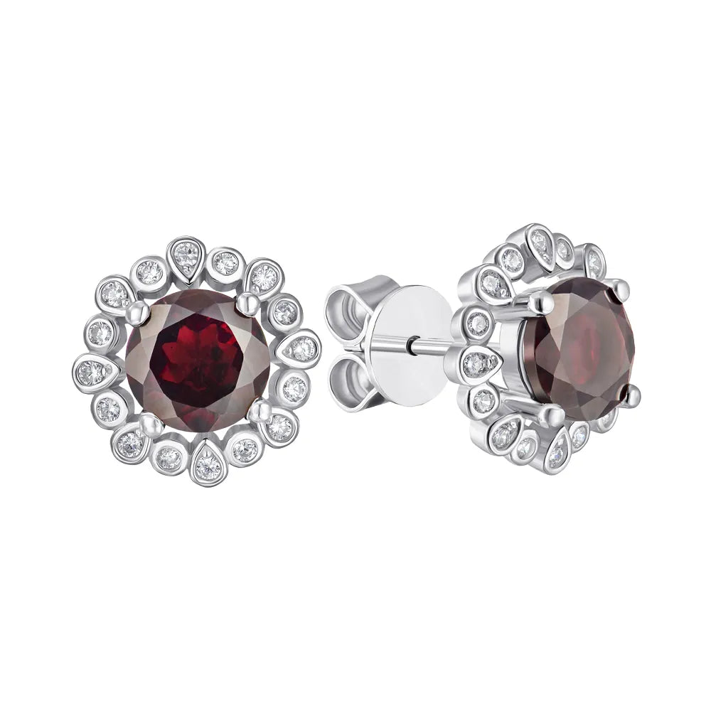 Сережки-пусети зі срібла з гранатом та фіанітами NA622-E/12/5079
