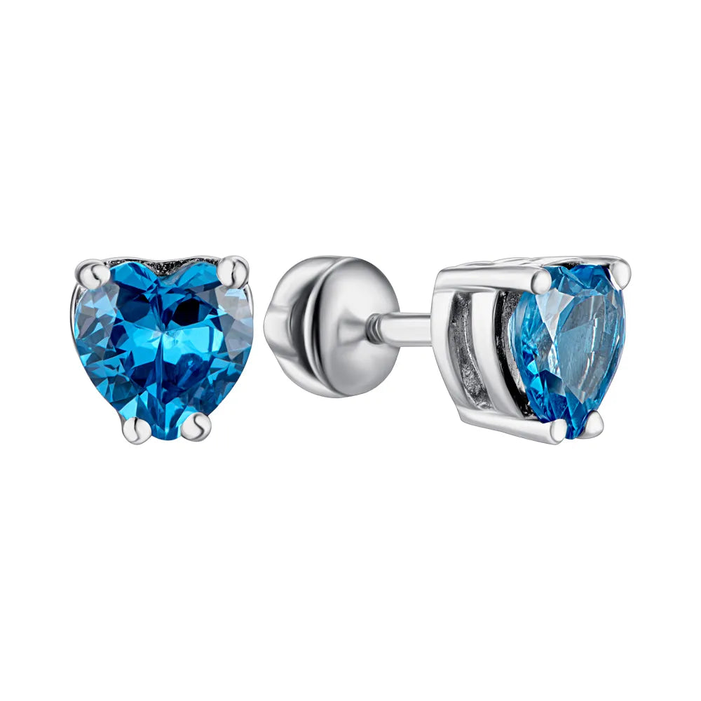 Сережки-пусети зі срібла з синім кварцом Серце 2712/9р-QLB