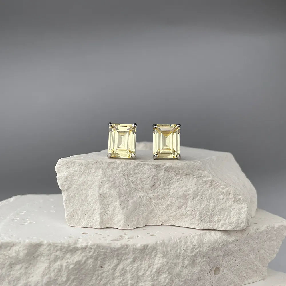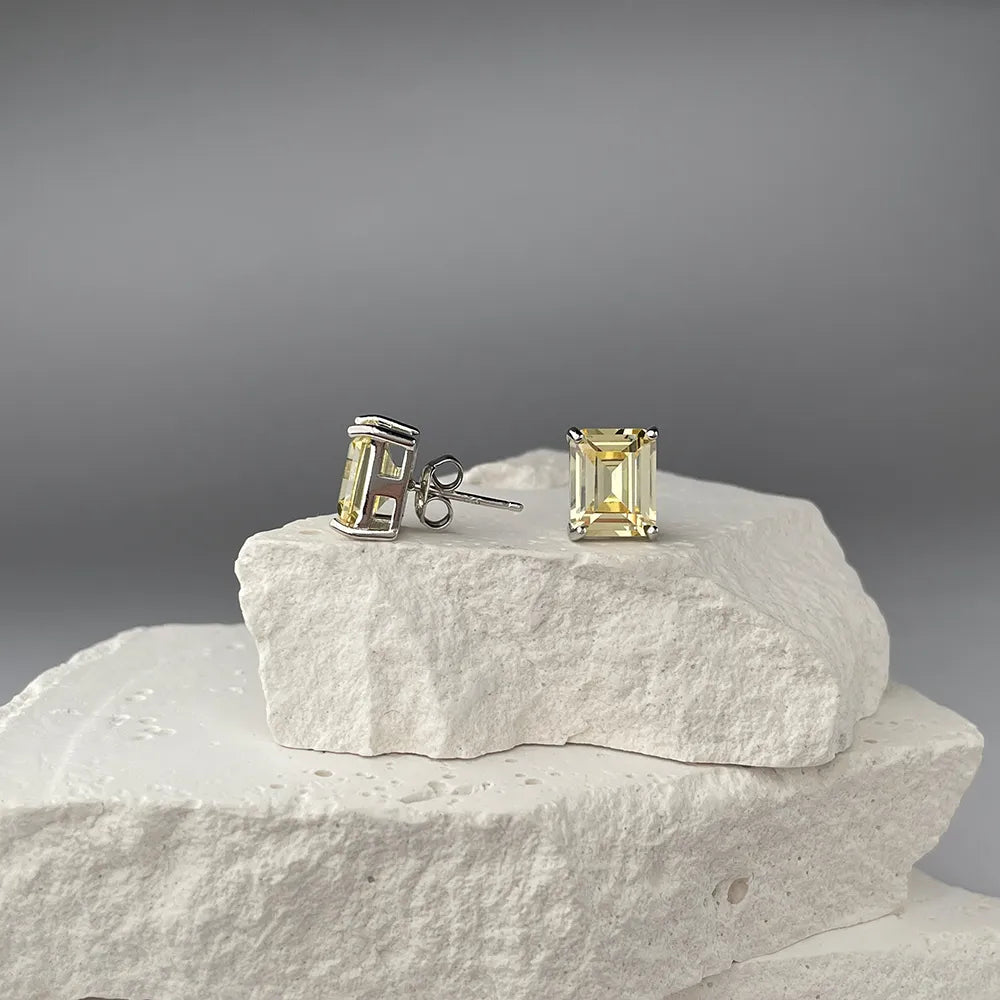 Сережки-пусети зі срібла з жовтим фіанітом ISA0196-E/12/1878
