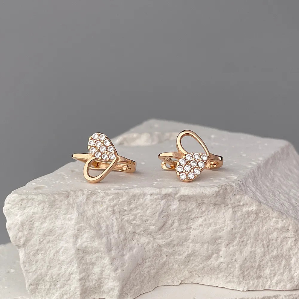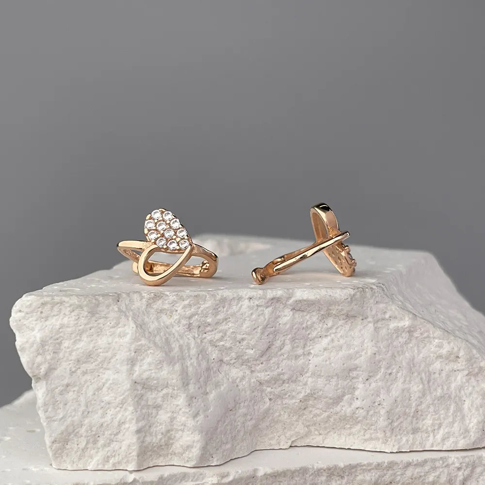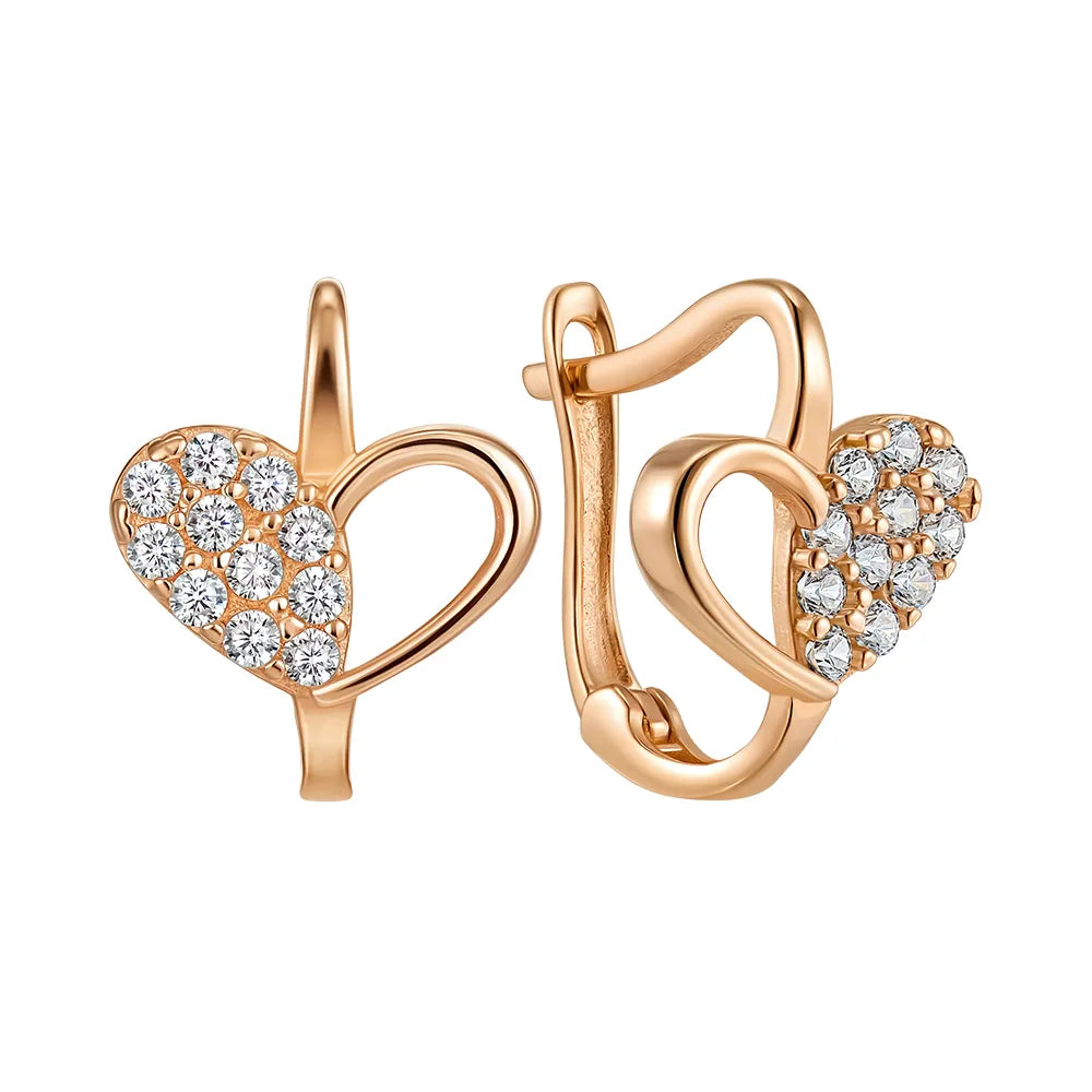 Сережки-сердечка з червоного золота з фіанітами G-211-E/01/1