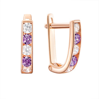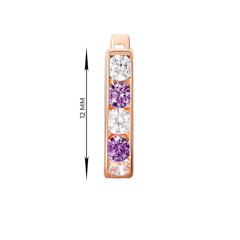 Сережки з червоного золота із фіолетовими та білими фіанітами 2076ф