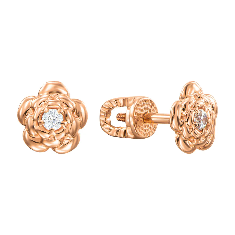 Сережки з червоного золота з фіанітами 22195/01/0/17