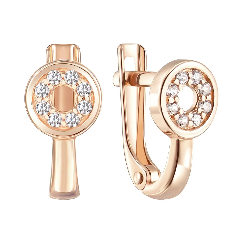 Сережки з червоного золота з фіанітами 23030/01/0/1