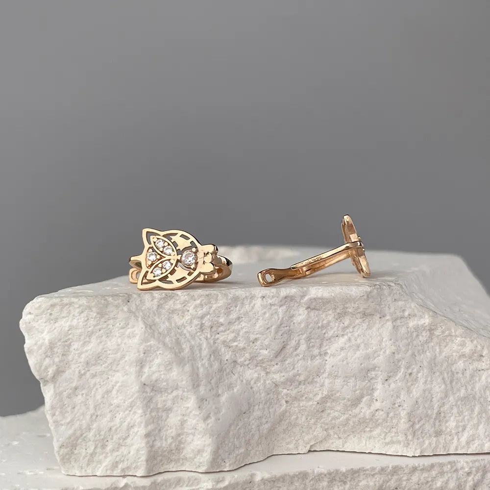 Золоті сережки 585 проби – це стильний і елегантний аксесуар для будь-якого образу. Виготовлені з високоякісного червоного золота, вони зберігають свій блиск і привабливість з часом. Їх класичний дизайн робить сережки універсальними, підходящими як для щоденного носіння, так і для урочистих подій. Золото дарує їм витонченість і елегантність, що завжди привертає увагу. Ідеальний вибір для тих, хто хоче виглядати стильно і витончено, підкреслюючи свою індивідуальність. Прикраса доповнена вставкою, що надає їй особливого шарму та витонченості.