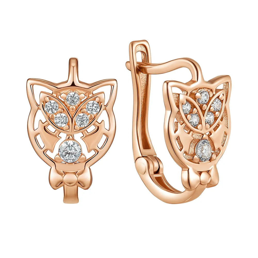Сережки з червоного золота з фіанітами F-1132-E/01/1