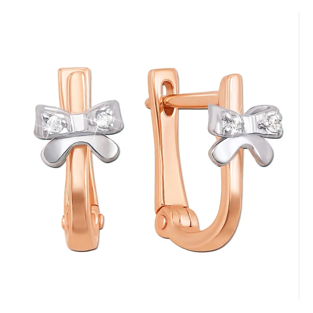 Сережки з комбінованого золота з фіанітами 21207