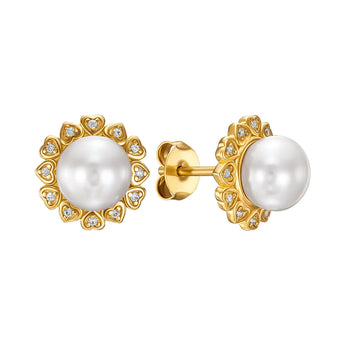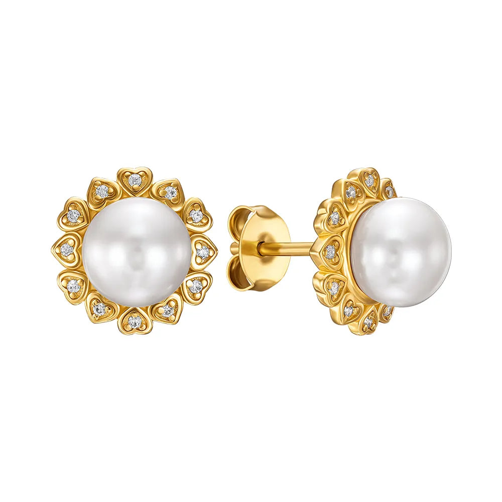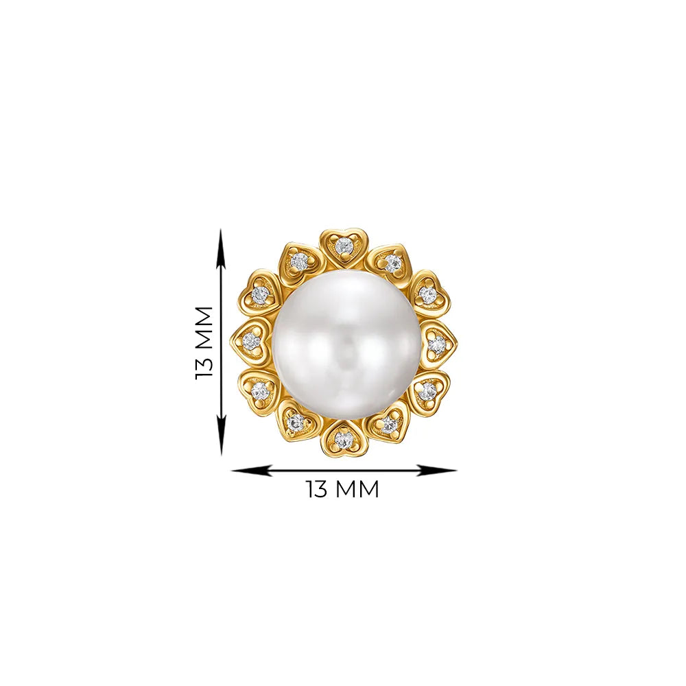 Сережки зі срібла в жовтій позолоті з перлами та фіанітами TE-1253-S-E/20/2007