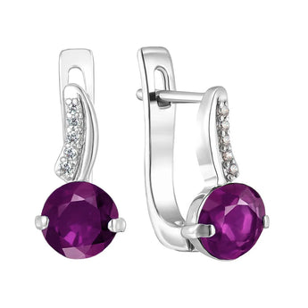 Сережки зі срібла з аметистом і фіанітами GREP2646-E/12/5630