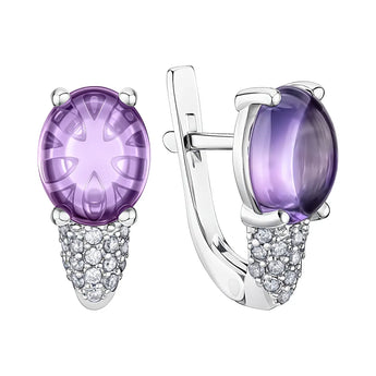 Сережки зі срібла з аметистом та фіанітами 2184/9р