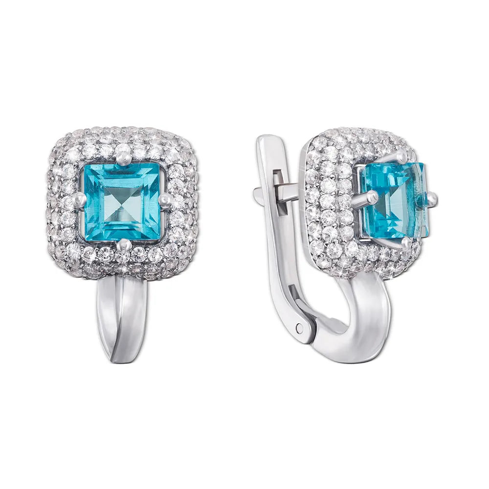 Сережки зі срібла з блакитним кварцом та фіанітами 2158/9р-QSWB