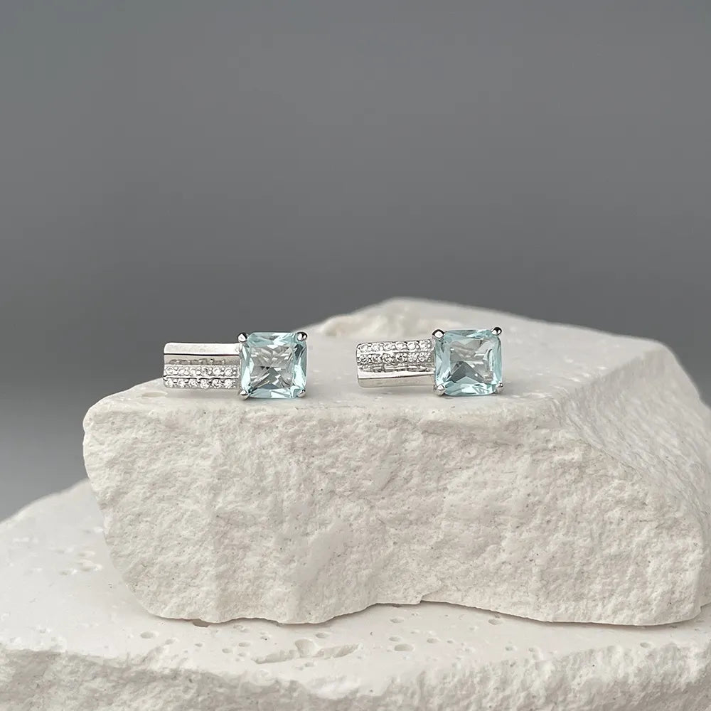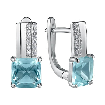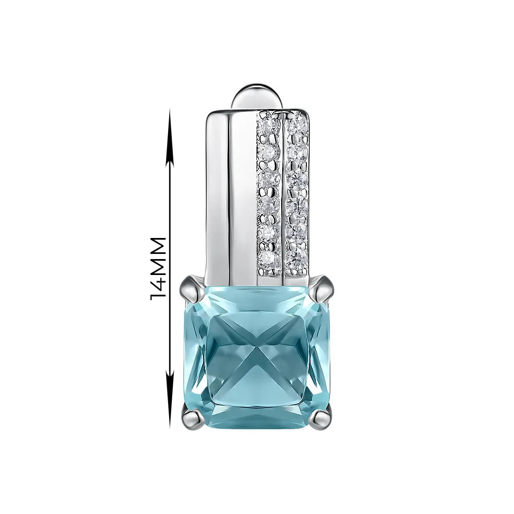 Сережки зі срібла з блакитним та білими фіанітами DE06355-E/12/1505