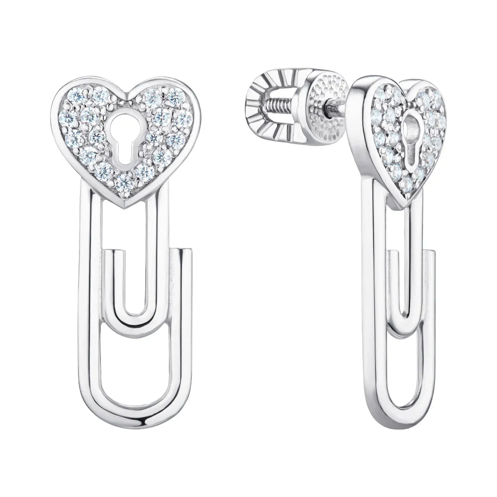 Сережки зі срібла з фіанітами 40866/12/1/323
