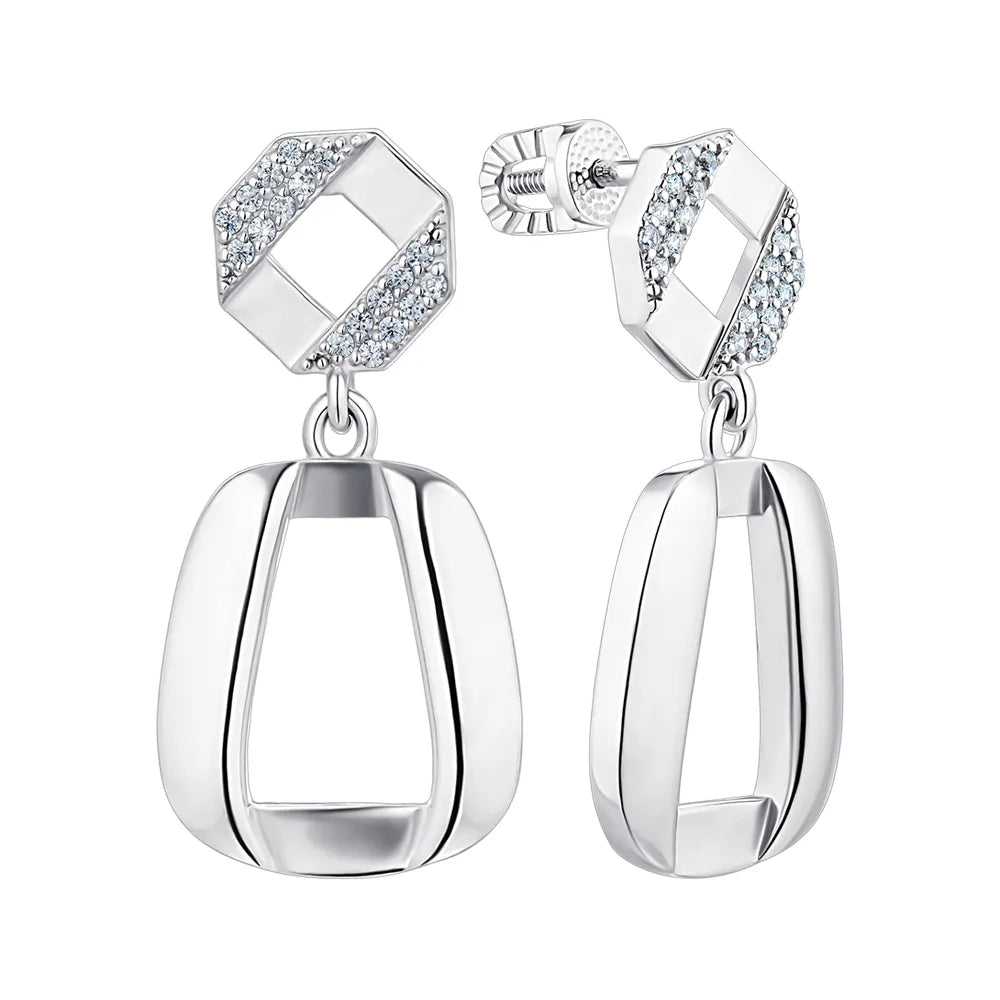 Сережки зі срібла з фіанітами 40952/12/1/1