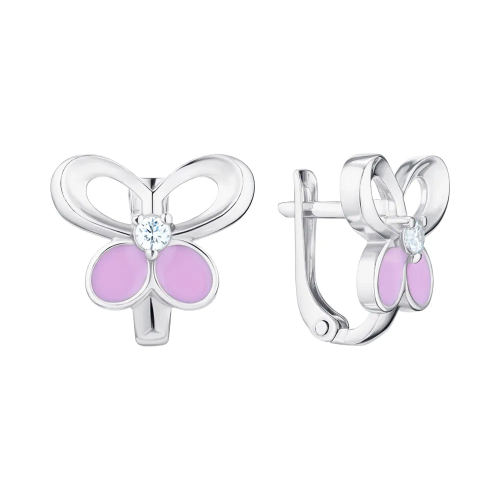 Сережки зі срібла з фіанітом та емаллю 40969/12/1/3889