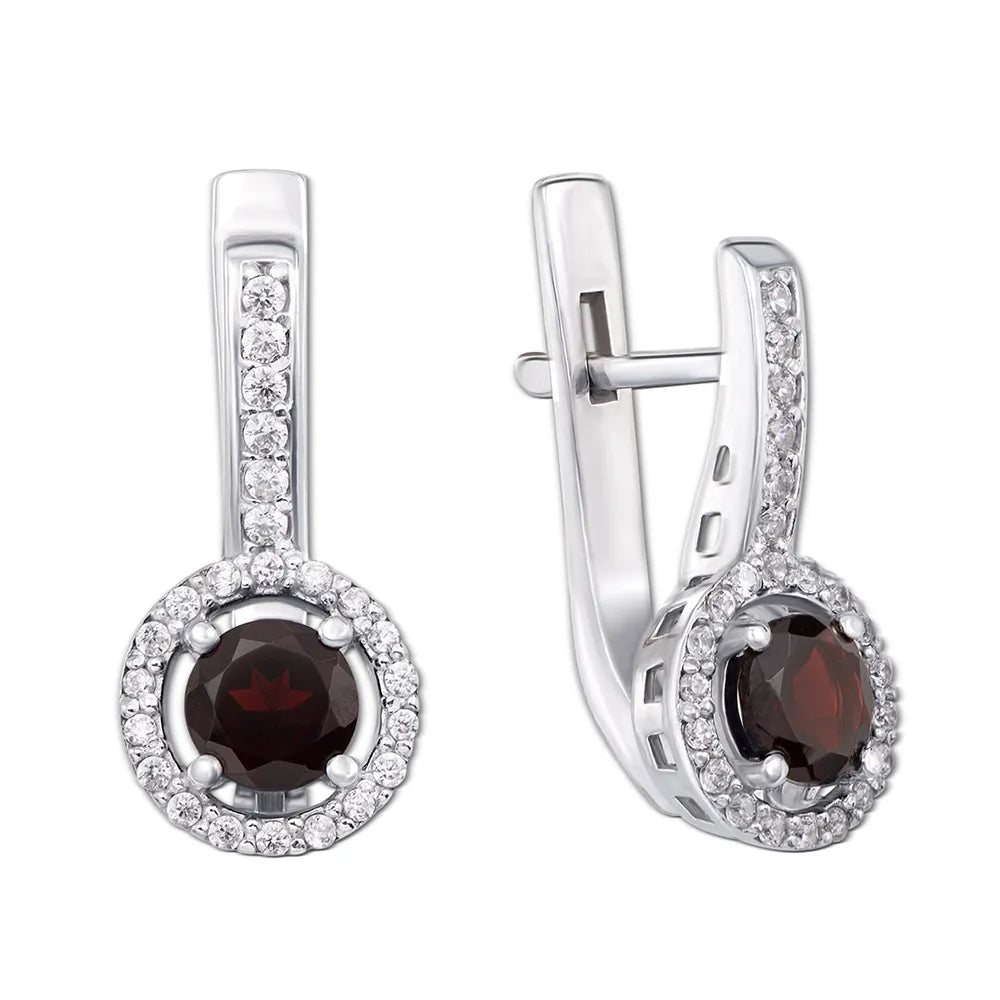 Сережки зі срібла з гранатом та фіанітами 2183/9р-GAR