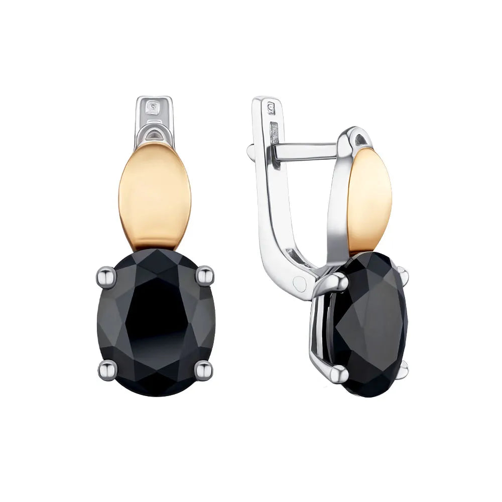 Сережки зі срібла з сапфіром гідротермальним та золотою накладкою 2054/1р-NSPH