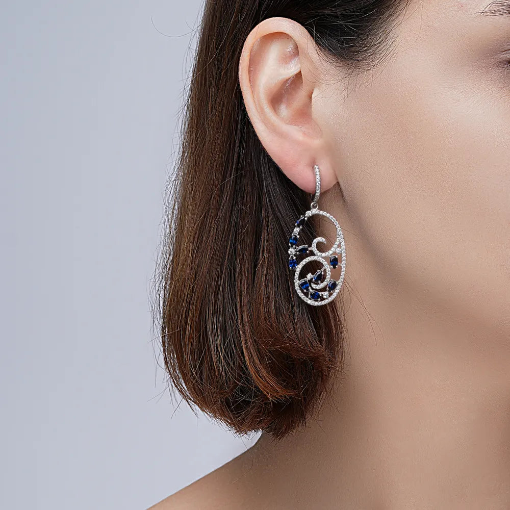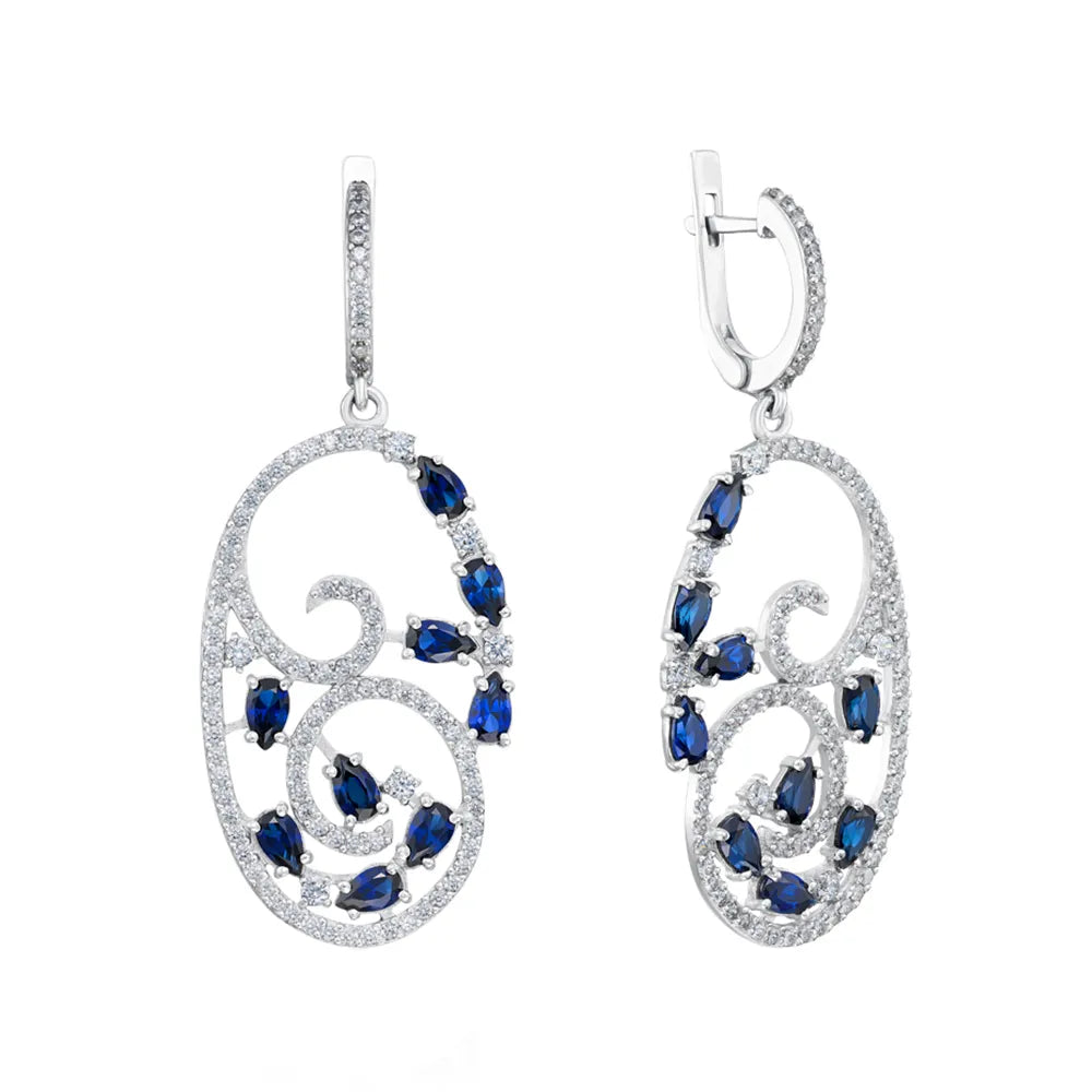 Сережки зі срібла з сапфіром та фіанітами 2132/9р-HSPH
