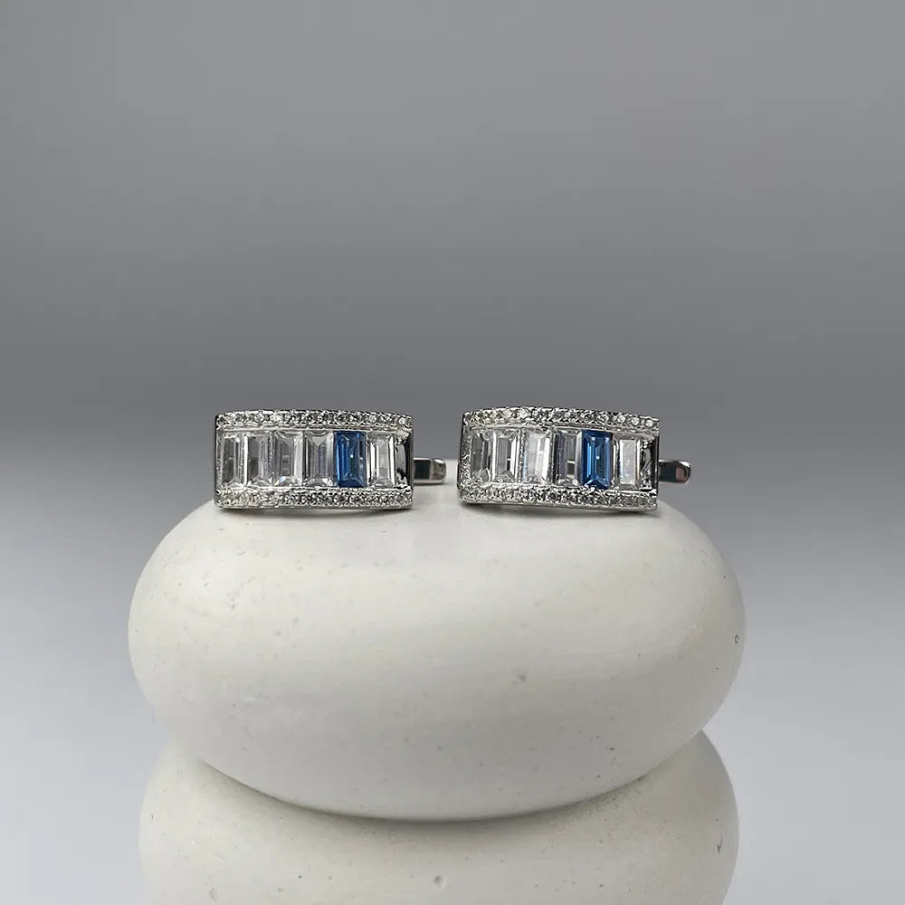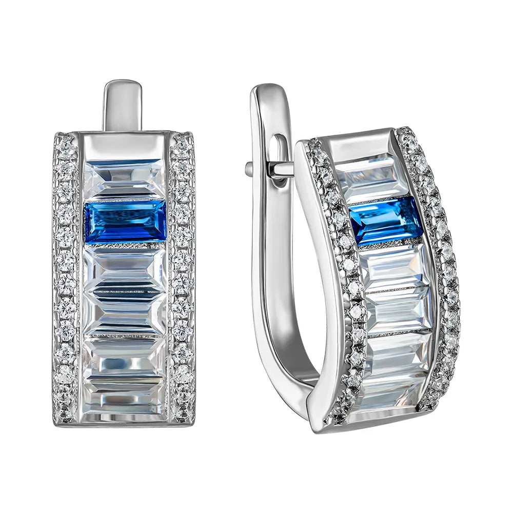 Сережки зі срібла з синім та білими фіанітами GE14020A-E/12/1511