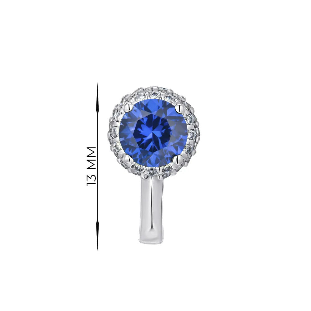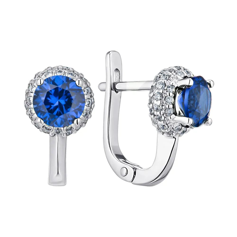 Сережки зі срібла з синтетичним сапфіром та фіанітами 40421/12/1/1530