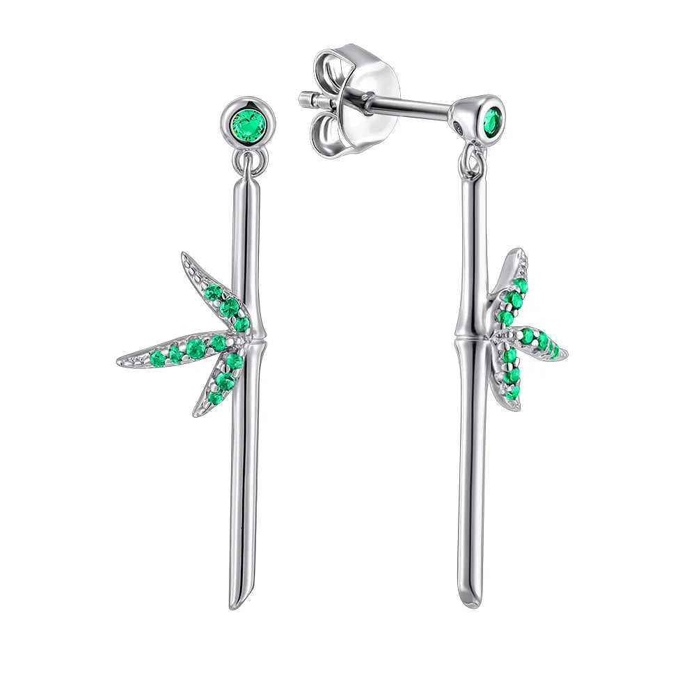 Сережки зі срібла з зеленими фіанітами ME14520A-E/12/10