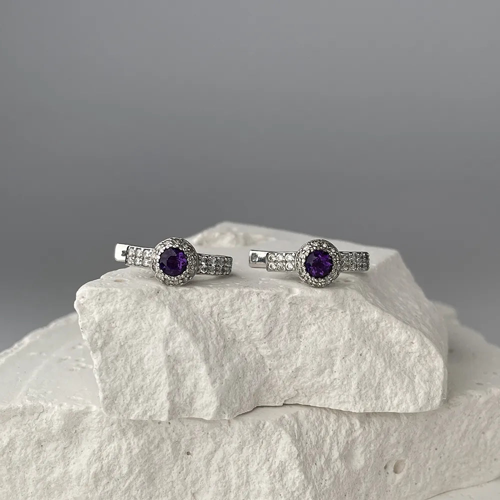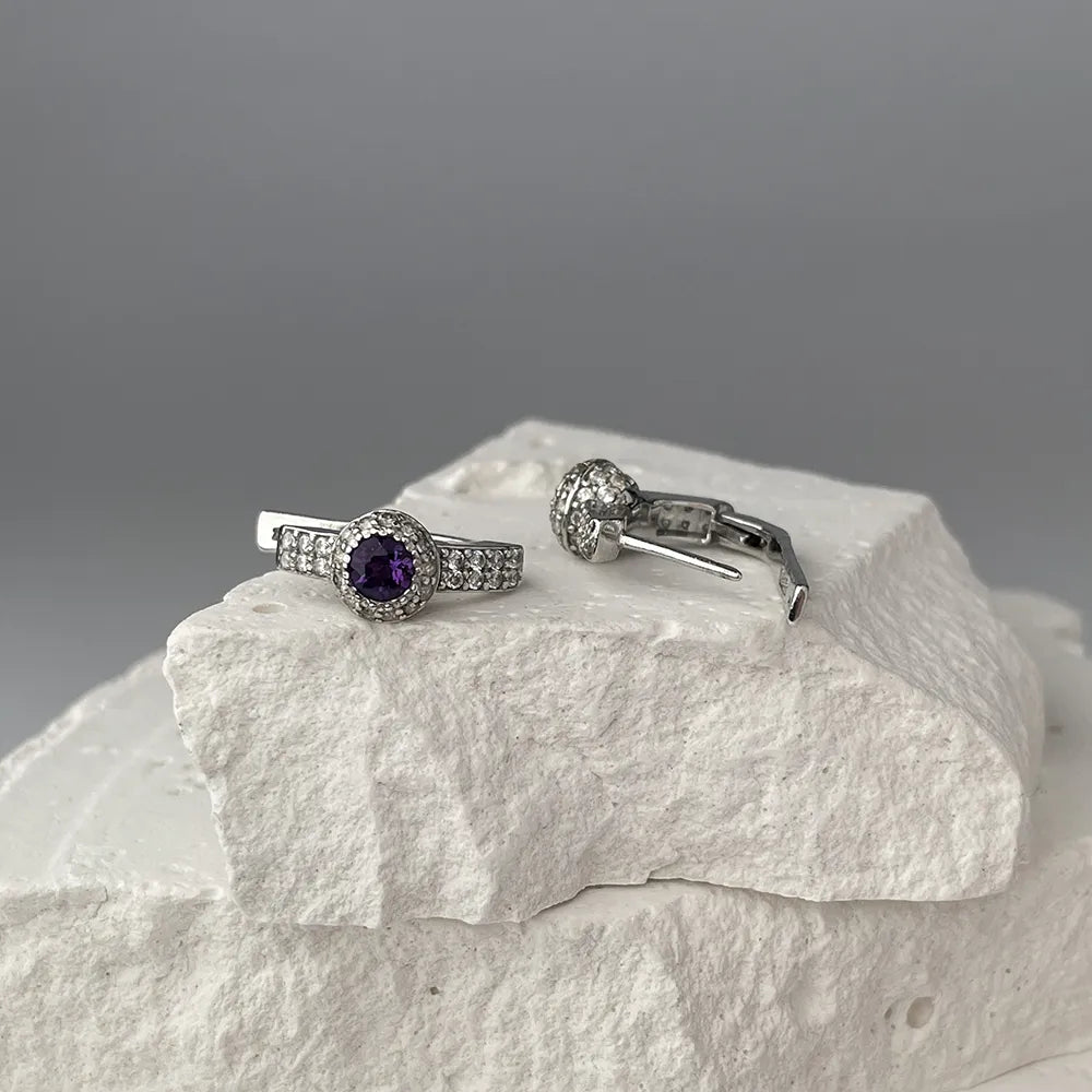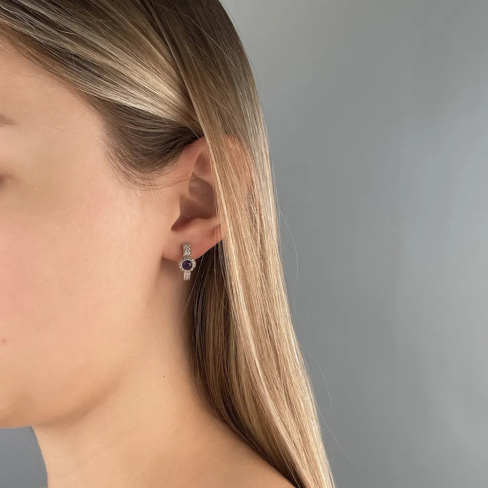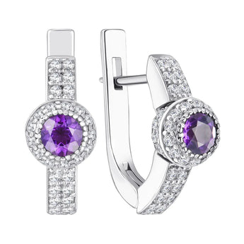 Срібні сережки з аметистами та фіанітами 2170/9р-AMT