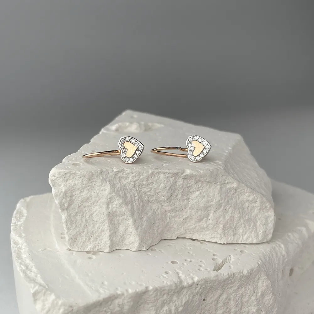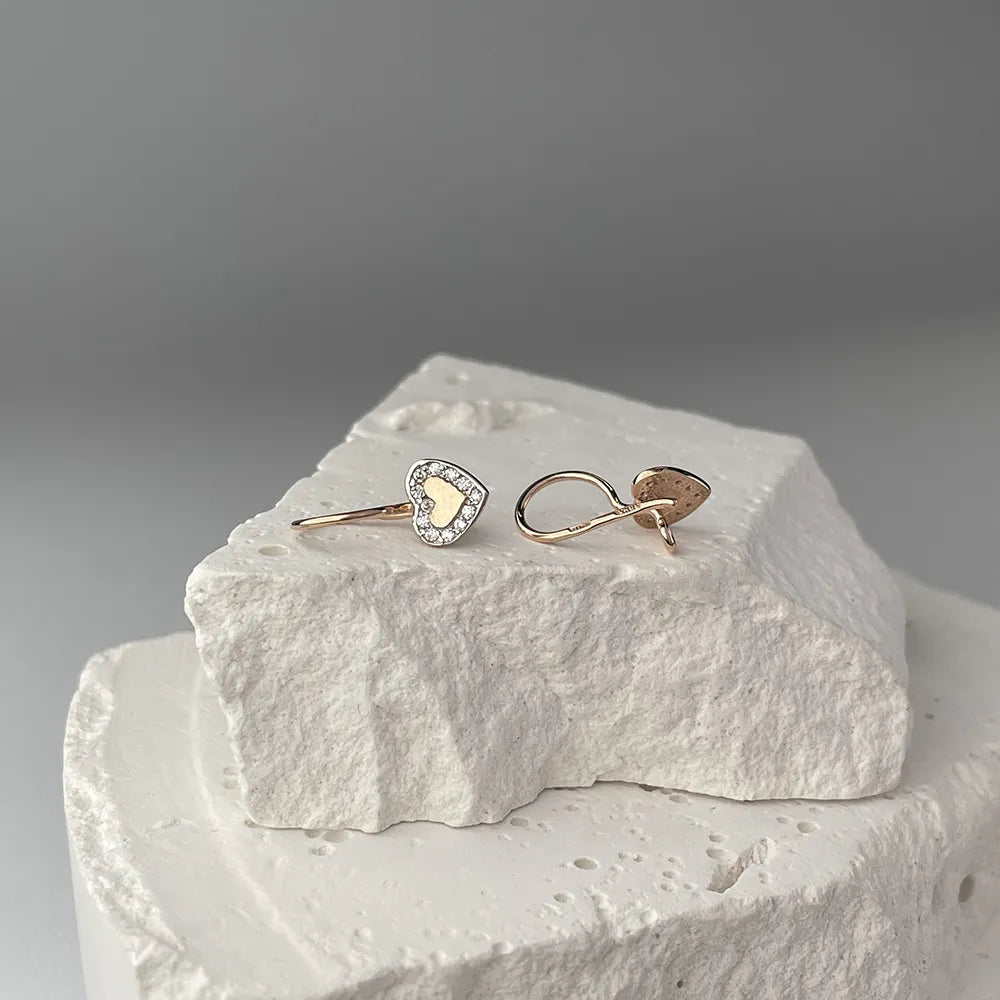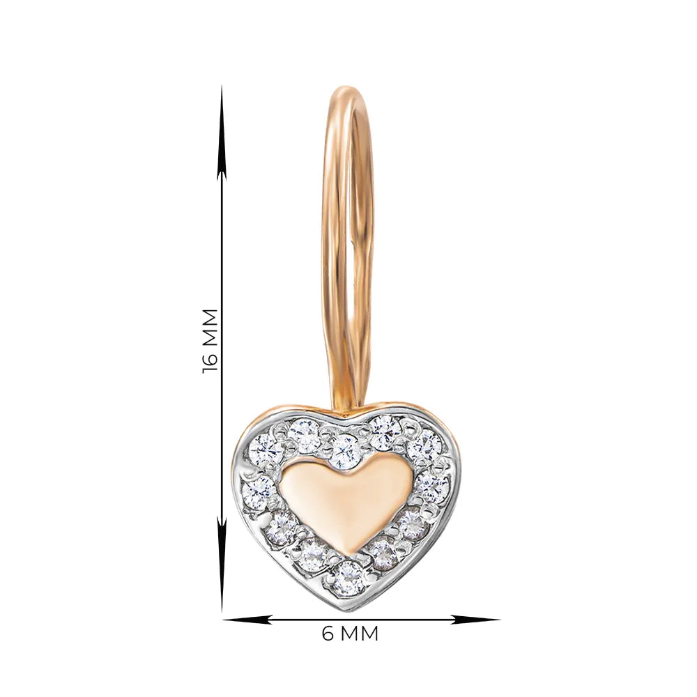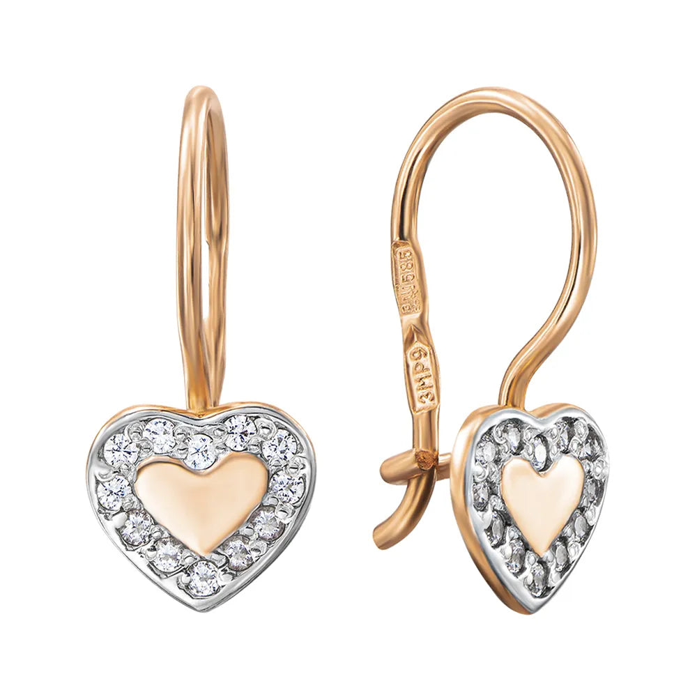 Золоті сережки Сердечка в комбінованому кольорі з фіанітами 22021/01/1/1