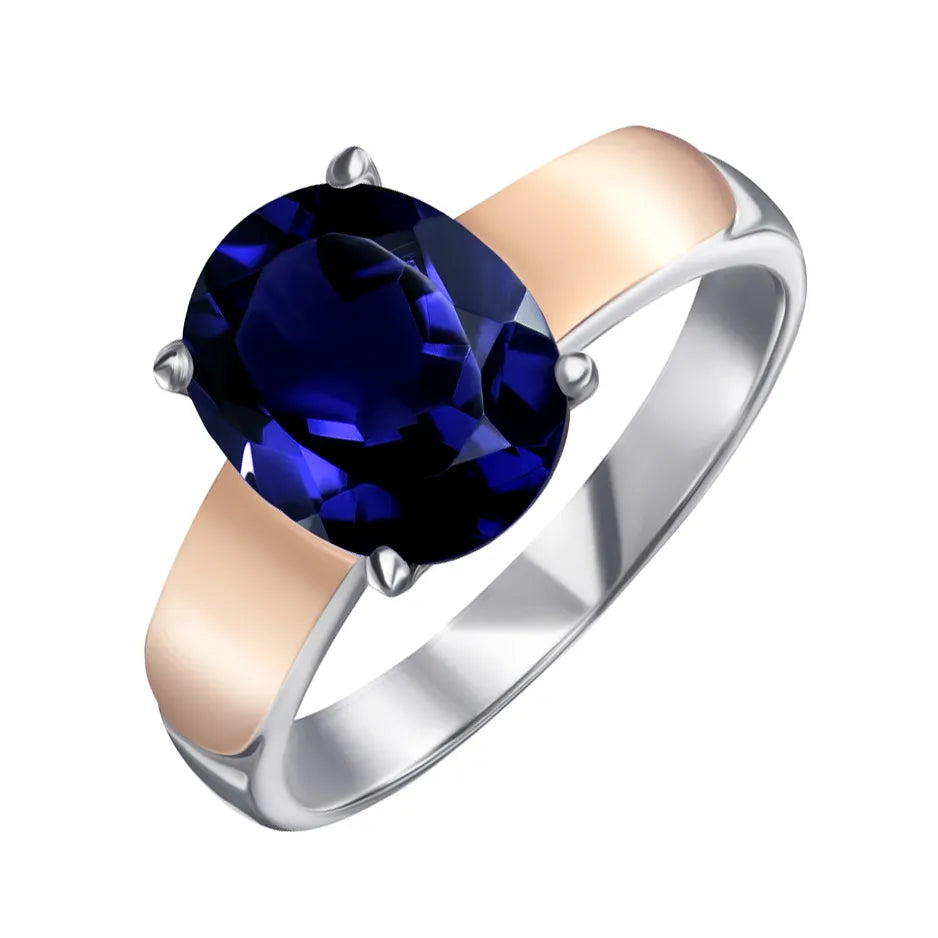 AGNI silver ring with gold overlays and sapphire 1267/1р-HSPH