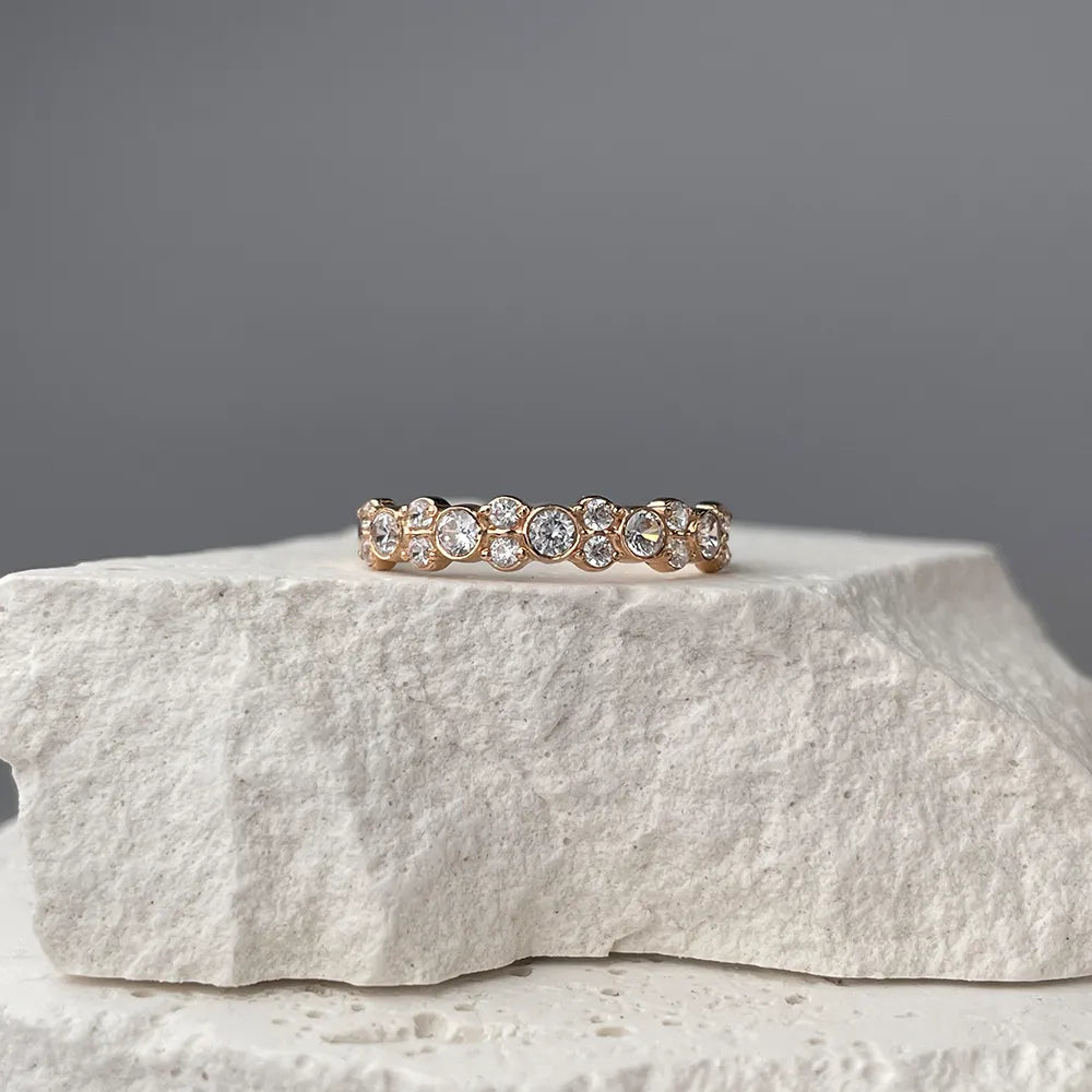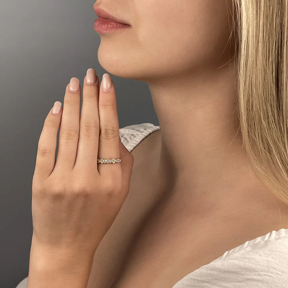 The cubic zirconia path adds a stylish accent to the ring, giving it character and individuality. The shining stones, representing purity and brilliance, give the jewelry a special appeal.